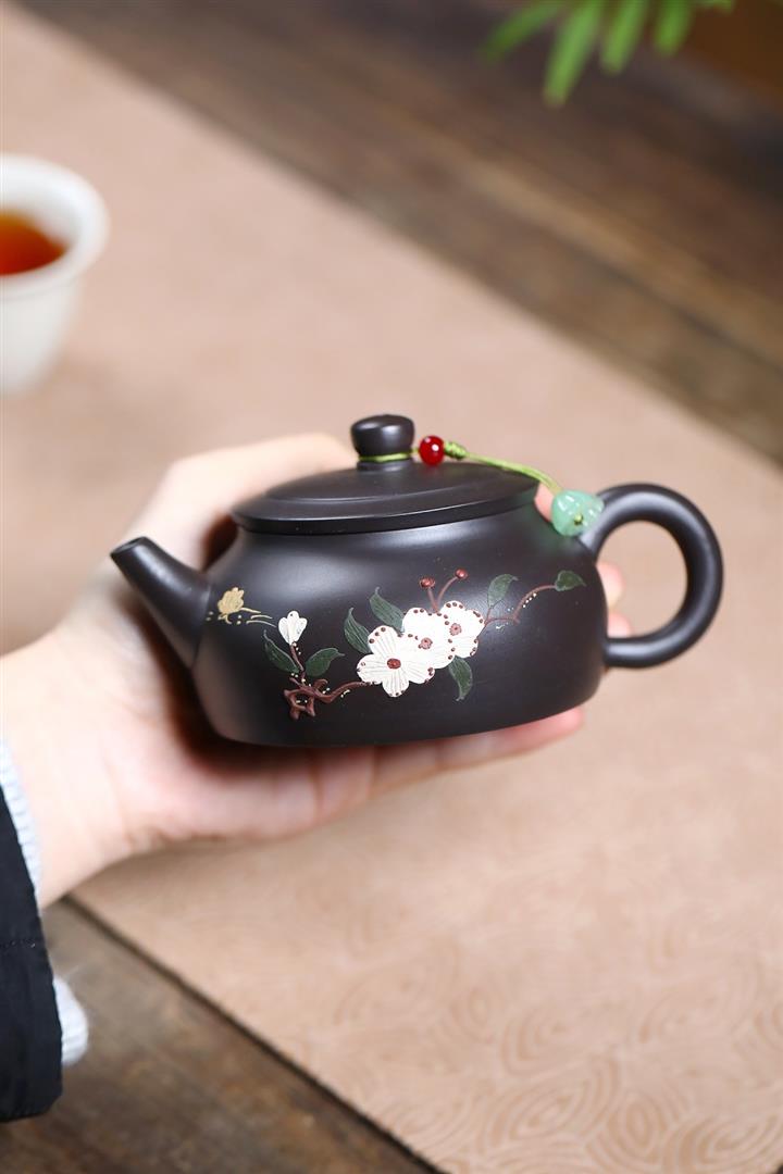 【作品介紹】此款壺形線條流暢,壺把,壺嘴,壺身壹氣呵成栩栩如生,是收藏把玩的好壺,泥料色澤古樸典雅,日久使用,漸露鋒芒,養成變化快,溫潤莊重,用其泡茶,使用的年代久,壺身就溫潤,泡出來的茶湯也就醇郁芳馨。