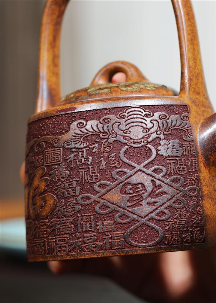 290cc原礦龍骨金砂百福鳳鳴提梁茶壺POT9415