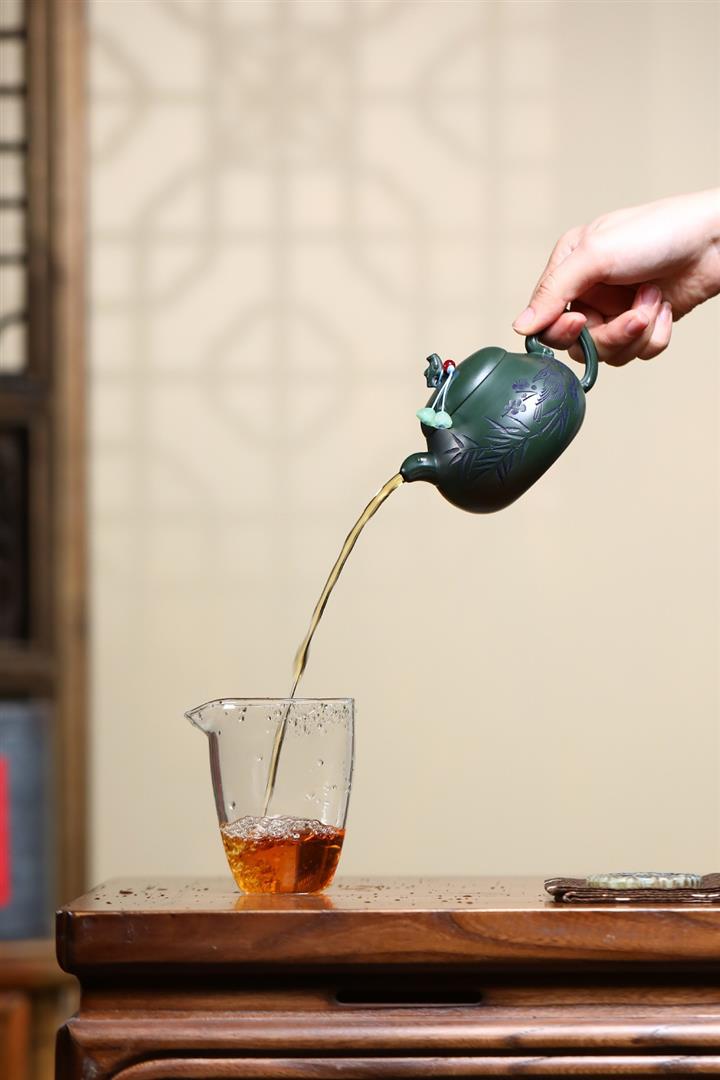 【泥料特點】砂土氣重,似淳實農民,日久使用,漸露鋒芒,養成變化,溫潤莊重。紫砂是壹種雙重氣孔結構的多孔性材質,氣孔微細,密度高。用紫砂壺沏茶,不失原味,且香不渙散,得茶之真香真味。紫砂使用越久,壺身色澤越發光亮照人,氣韻溫雅。紫砂壺長久使用器身會因撫摸擦拭,變得越發溫潤光澤。