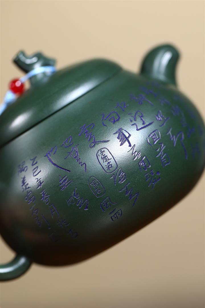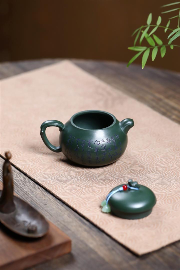 原礦青灰段手工刻字古韻茶壺 POT3571