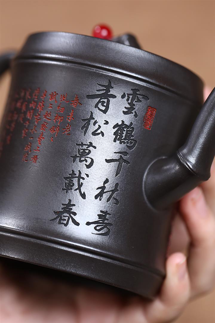 280cc原礦石黃松鶴延年竹節泡茶壺POT9439