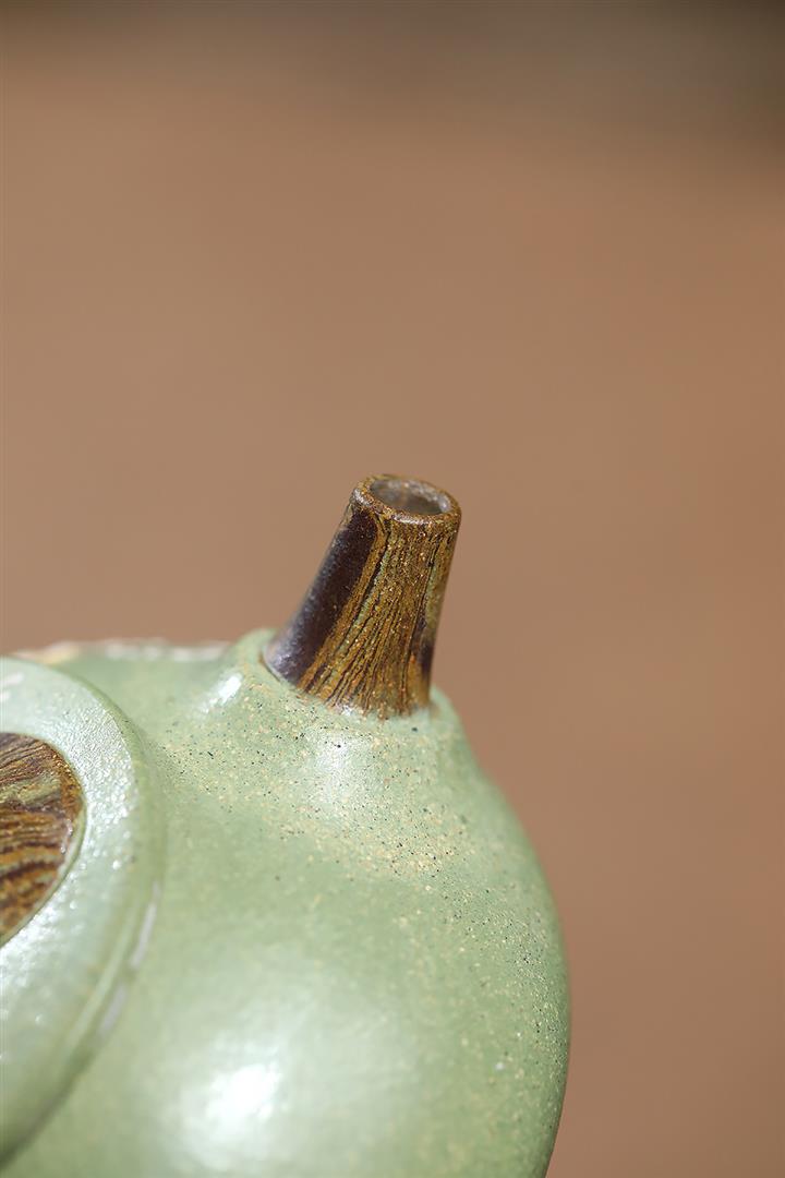原礦綠泥琢砂竹報平安泡茶壺POT7879