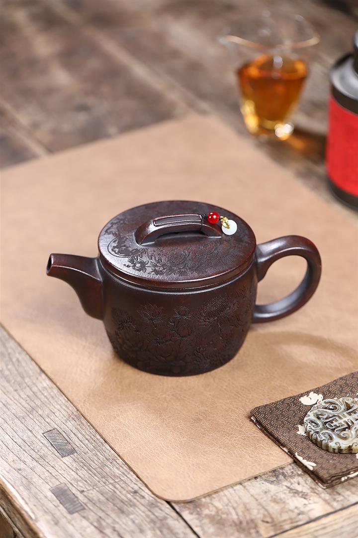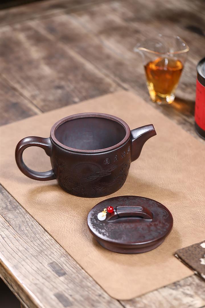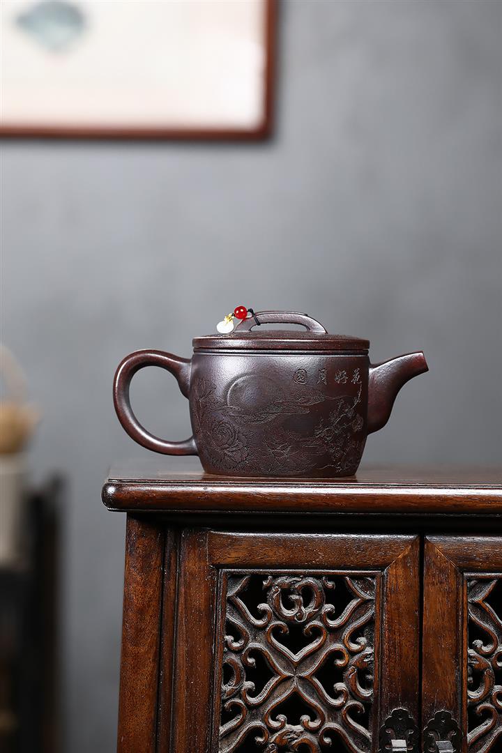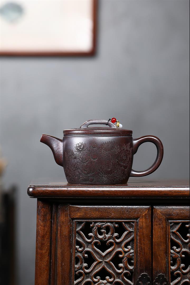 230cc原礦紫泥刻繪百福德鐘泡茶壺POT9529