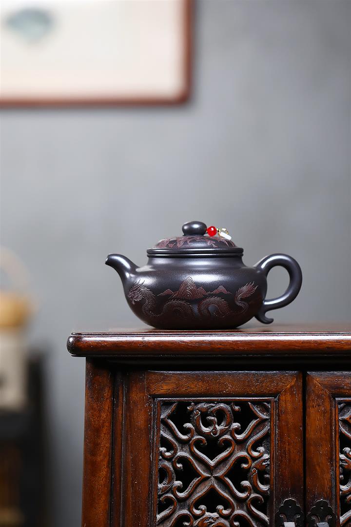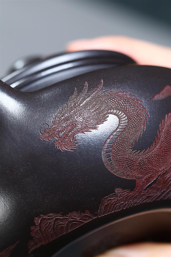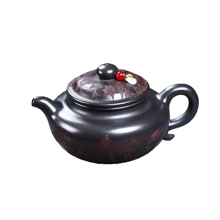 400cc原礦玄鐵石黃遊龍仿古泡茶壺POT9487