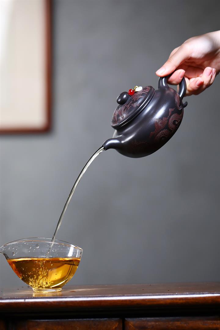 【泥料特點】砂土氣重,似淳實農民,日久使用,漸露鋒芒,養成變化,溫潤莊重。紫砂是壹種雙重氣孔結構的多孔性材質,氣孔微細,密度高。用紫砂壺沏茶,不失原味,且香不渙散,得茶之真香真味。紫砂使用越久,壺身色澤越發光亮照人,氣韻溫雅。紫砂壺長久使用器身會因撫摸擦拭,變得越發溫潤光澤。