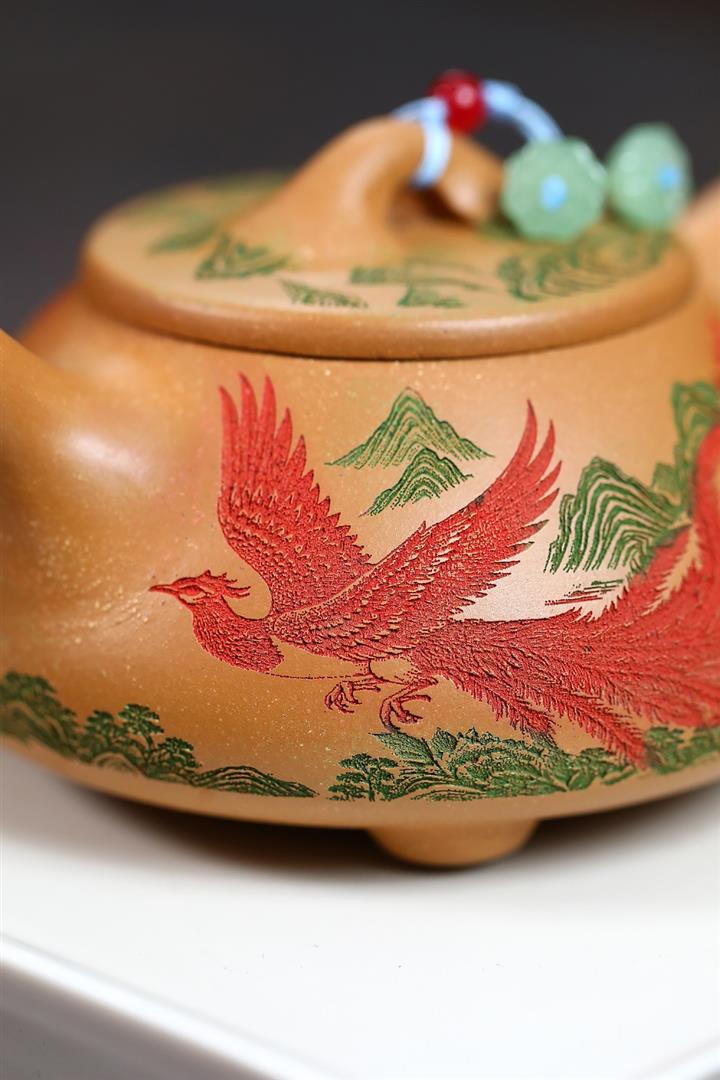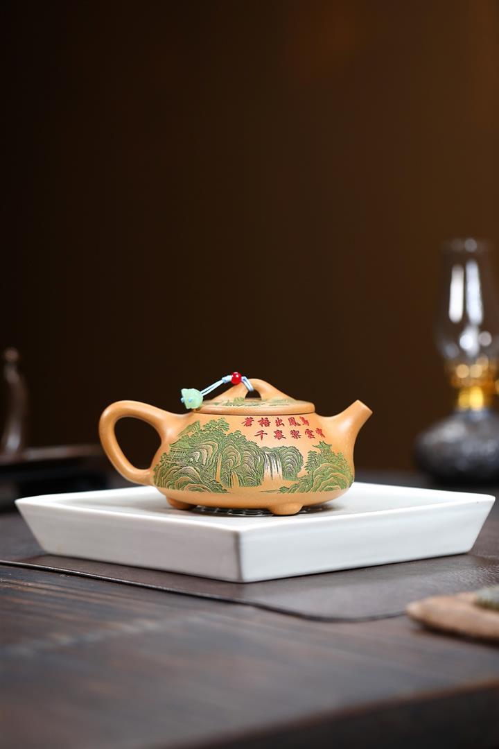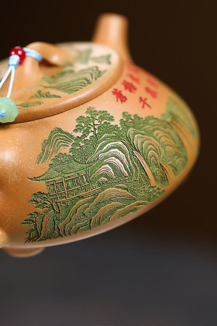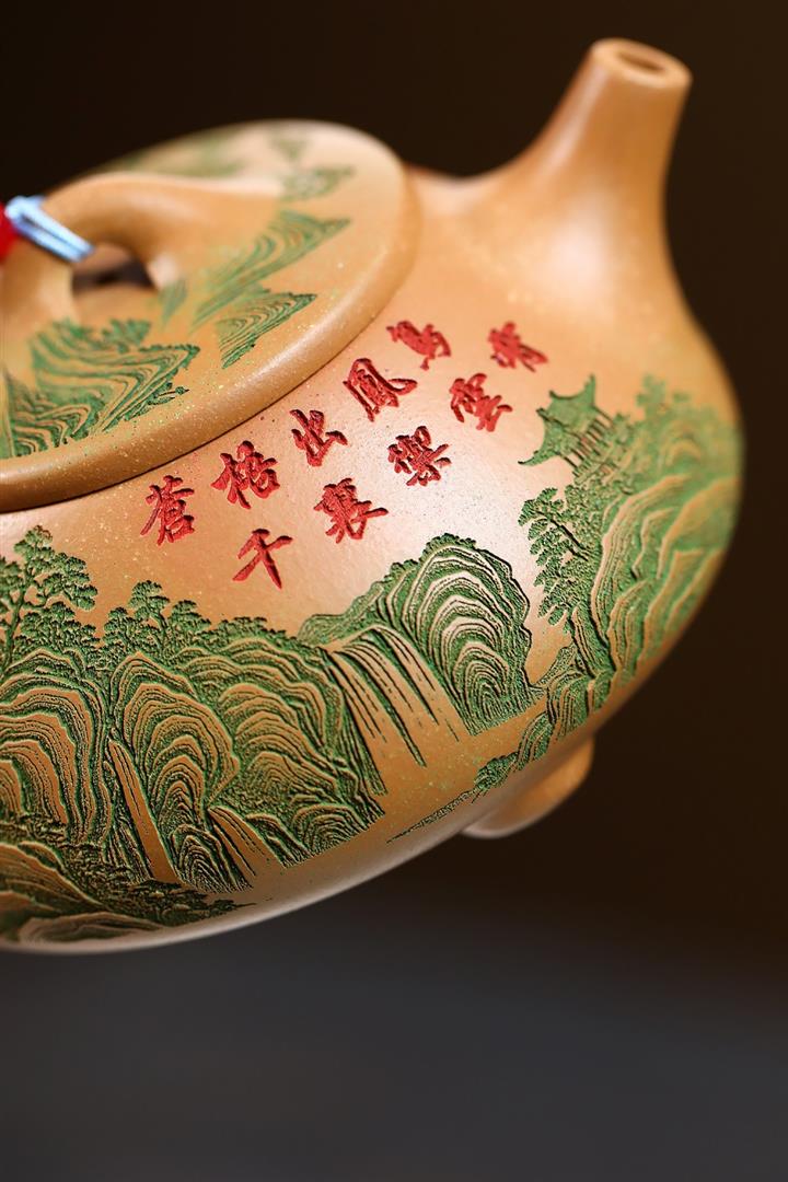 原礦綠泥琢砂竹報平安泡茶壺POT7879