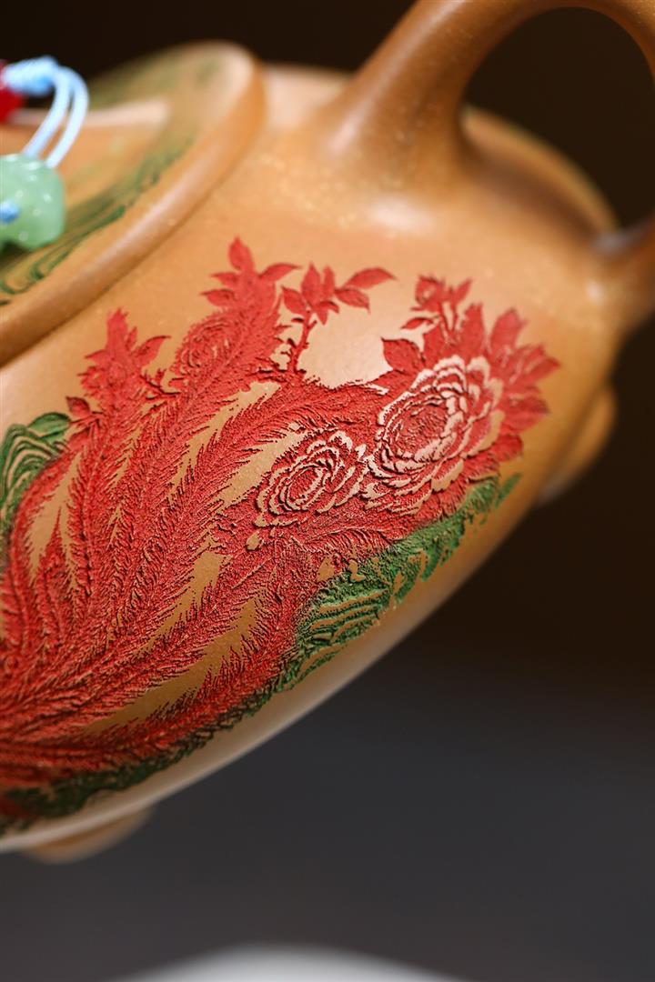 【泥料特點】砂土氣重,似淳實農民,日久使用,漸露鋒芒,養成變化,溫潤莊重。紫砂是壹種雙重氣孔結構的多孔性材質,氣孔微細,密度高。用紫砂壺沏茶,不失原味,且香不渙散,得茶之真香真味。紫砂使用越久,壺身色澤越發光亮照人,氣韻溫雅。紫砂壺長久使用器身會因撫摸擦拭,變得越發溫潤光澤。