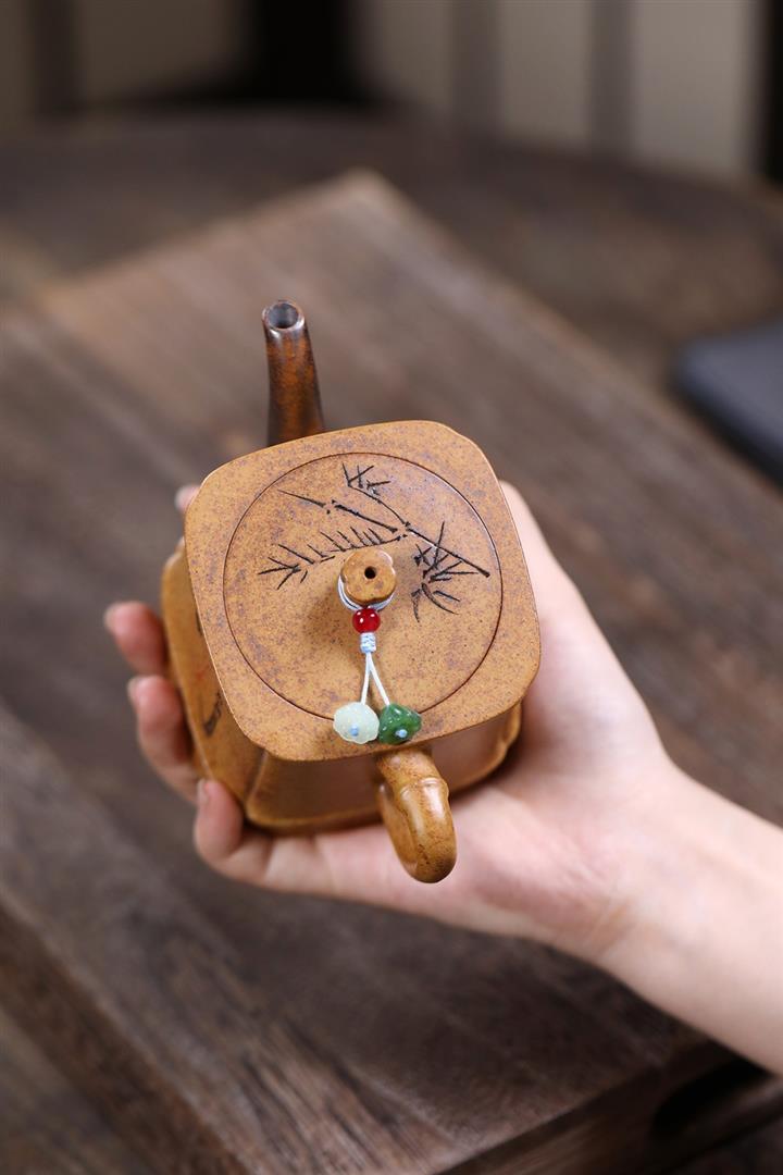 250cc原礦龍骨金砂勁竹四方泡茶壺POT9571