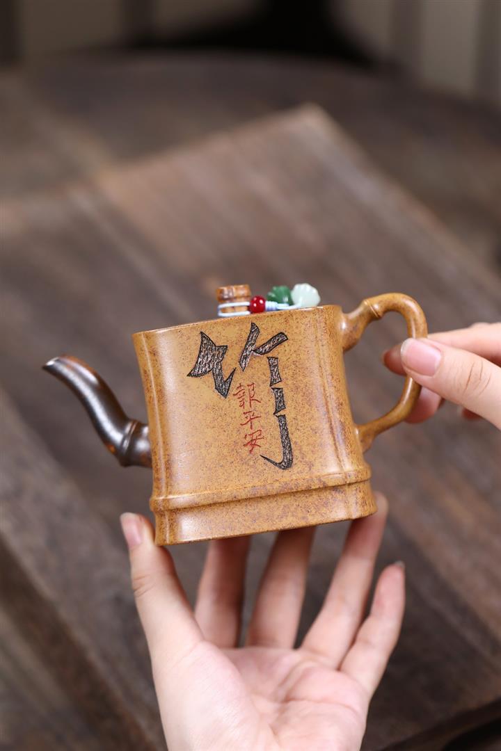【作品介紹】此款壺形線條流暢,壺把,壺嘴,壺身壹氣呵成栩栩如生,是收藏把玩的好壺,泥料色澤古樸典雅,日久使用,漸露鋒芒,養成變化快,溫潤莊重,用其泡茶,使用的年代久,壺身就溫潤,泡出來的茶湯也就醇郁芳馨。