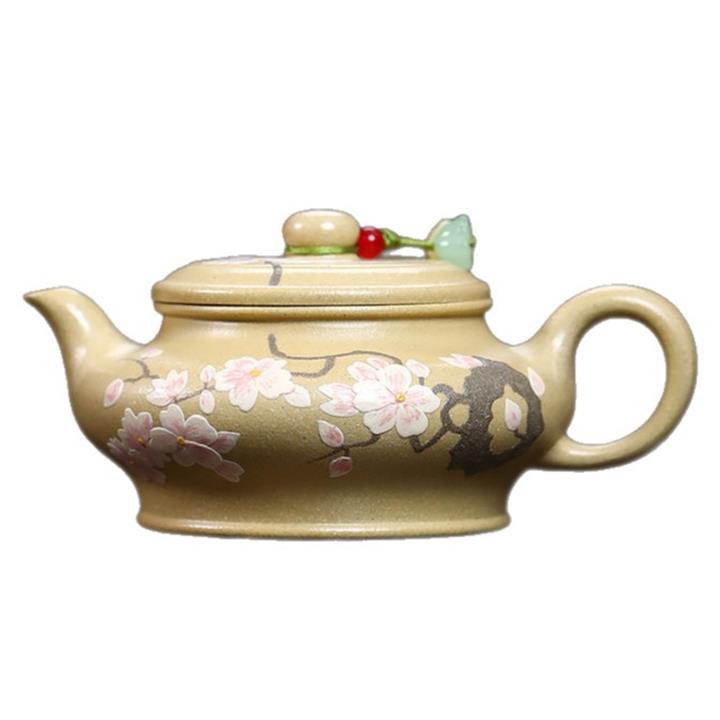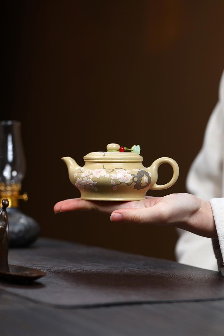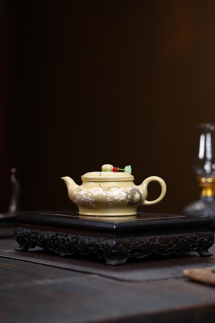 180cc原礦本山綠泥梅花虛扁泡茶壺POT9572