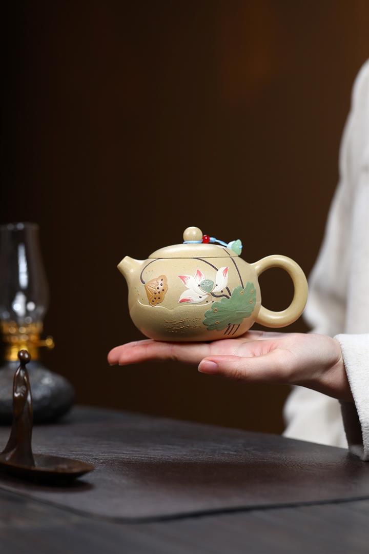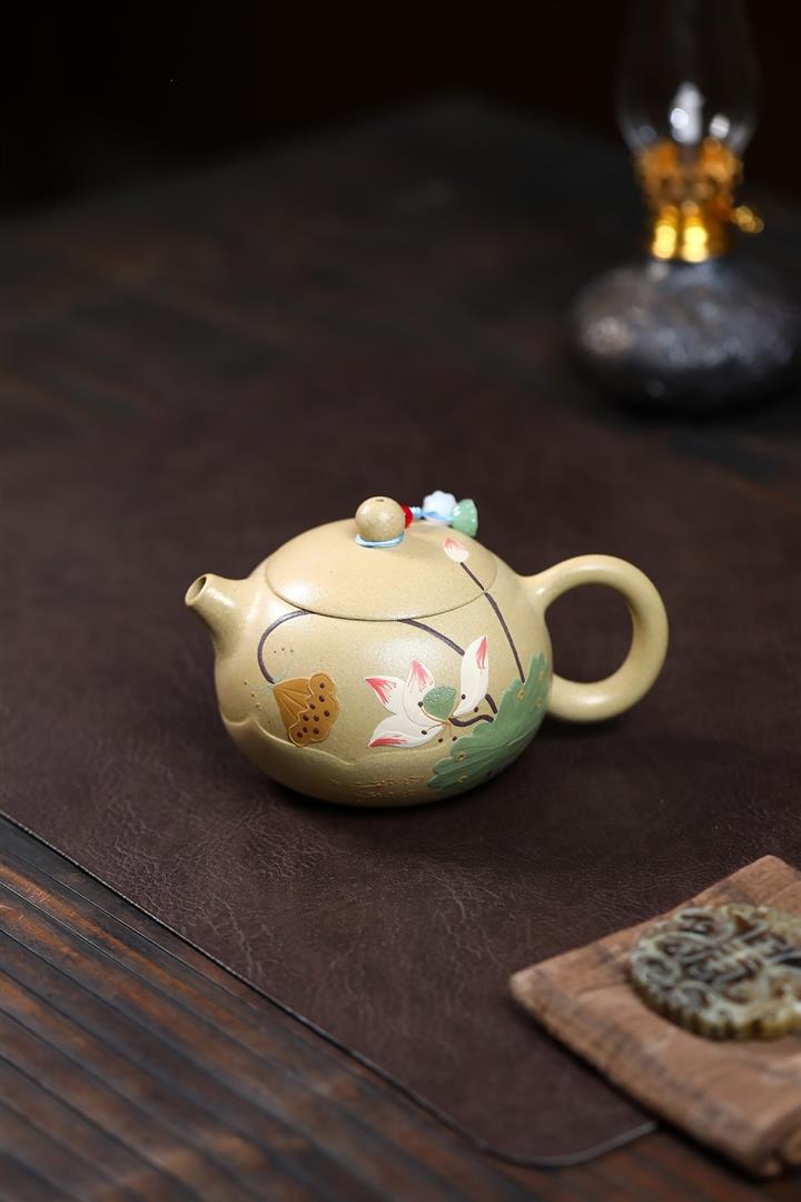 原礦老紫泥手工魚趣蓮蓬茶壺POT6671
