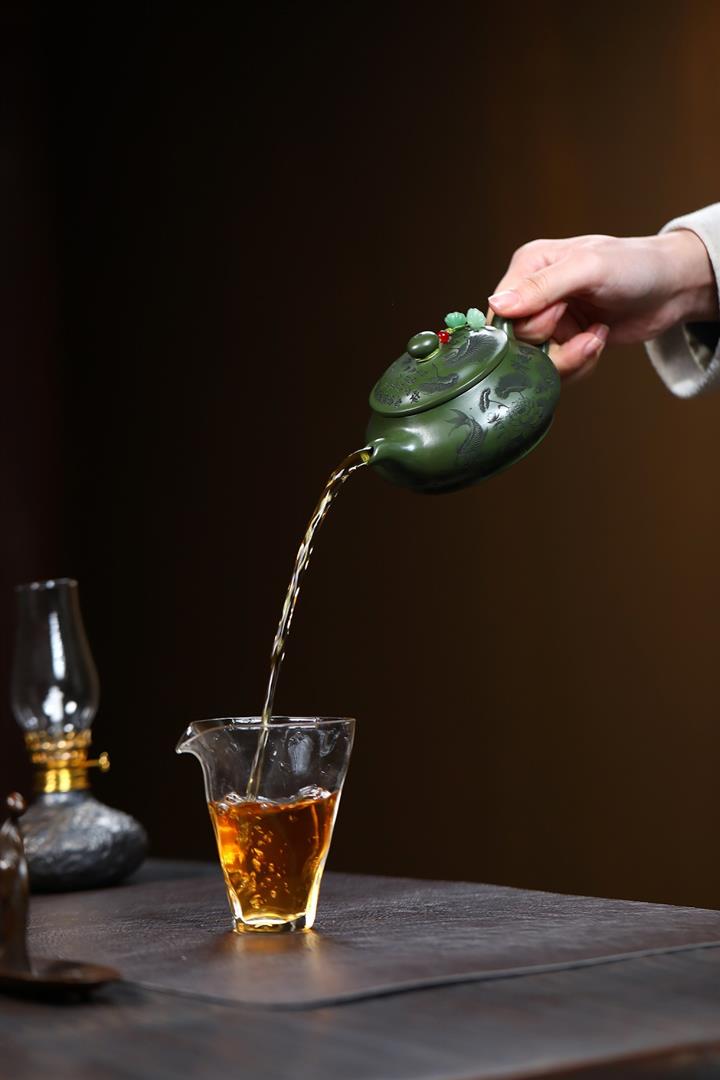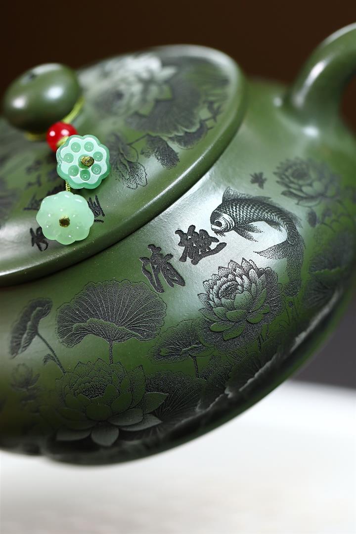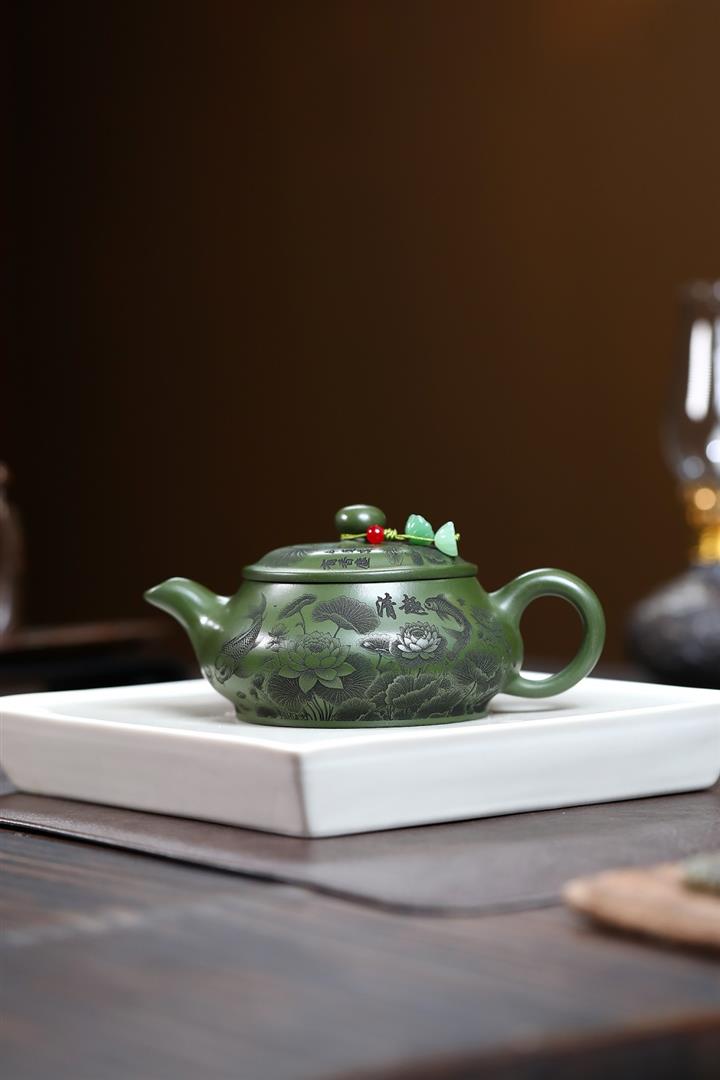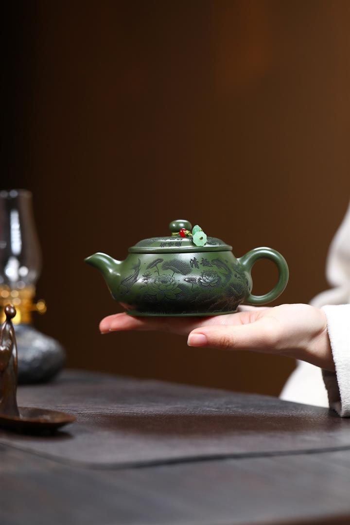 240cc原礦優質綠泥荷塘清趣明爐泡茶壺POT9575