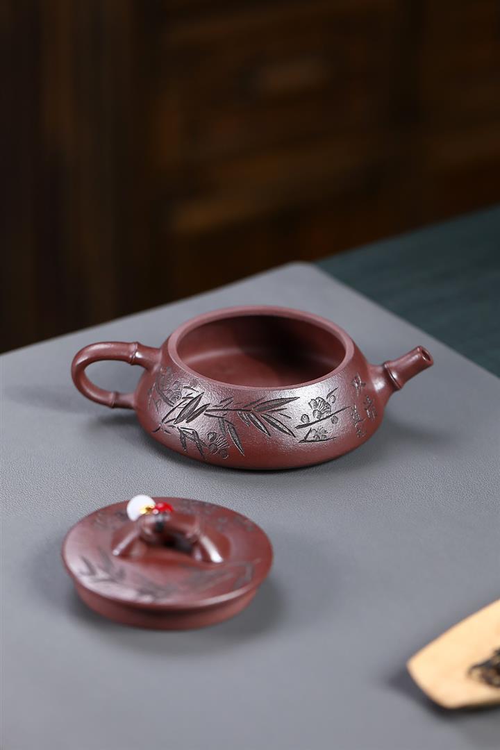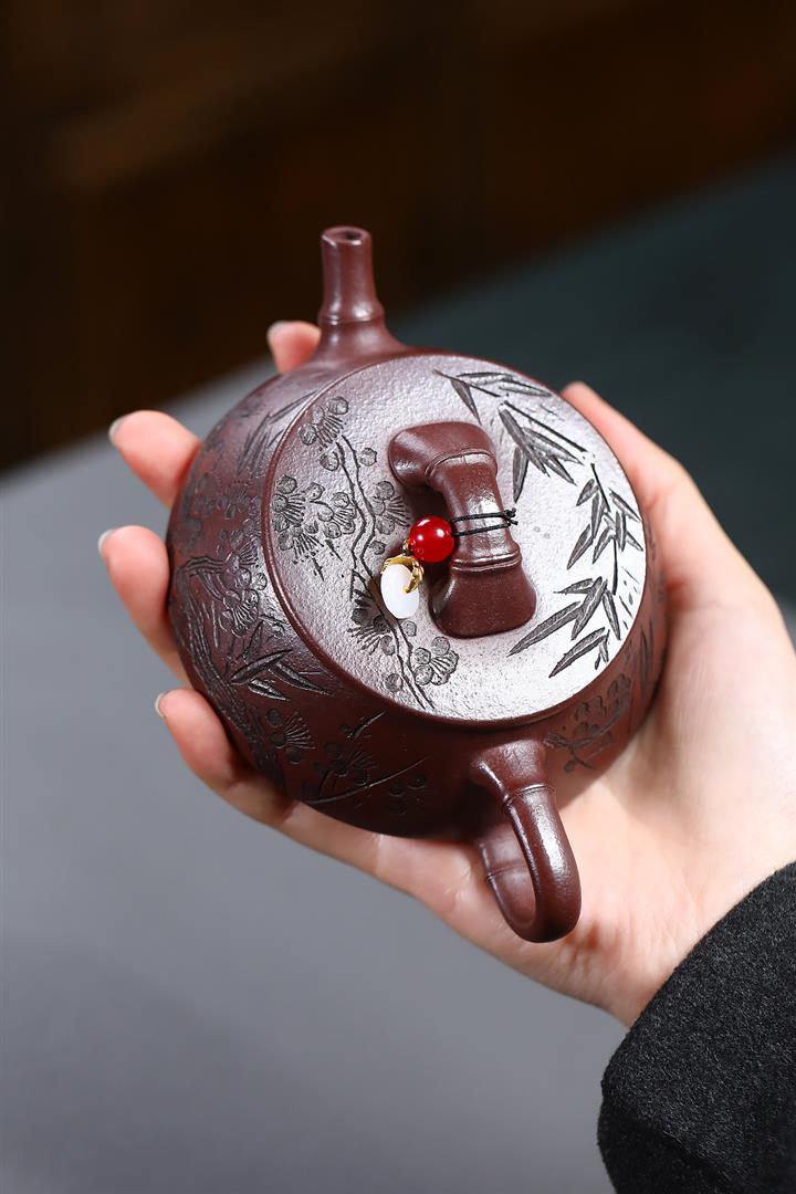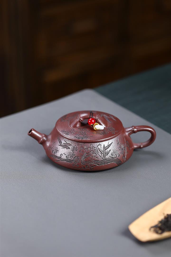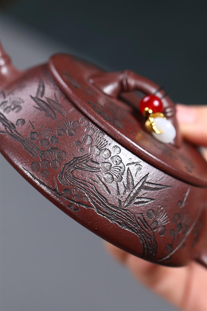 原礦石紅磁吸刻字巨輪茶壺POT7726