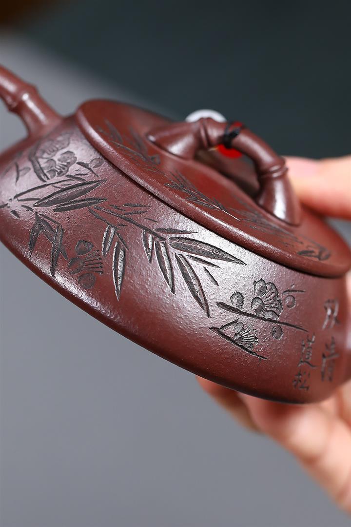 原礦石黃泥龍紋扁腹滿刻茶壺POT7723