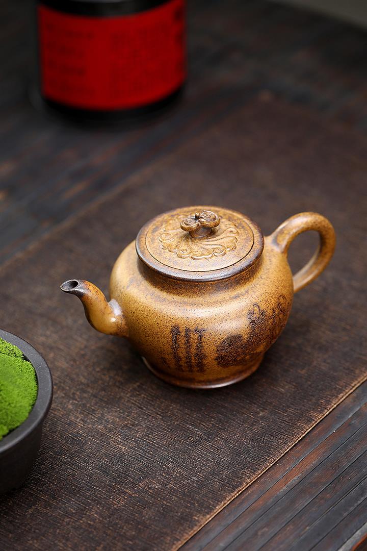 400cc原礦高溫段泥刻繪靈芝泡茶壺POT9597