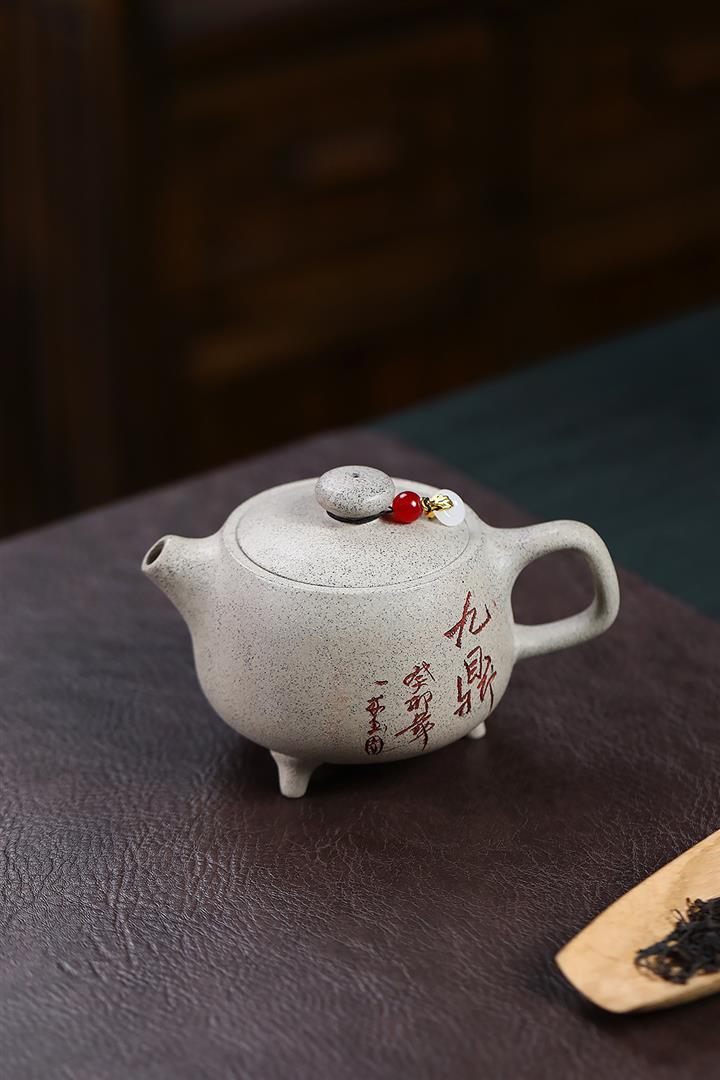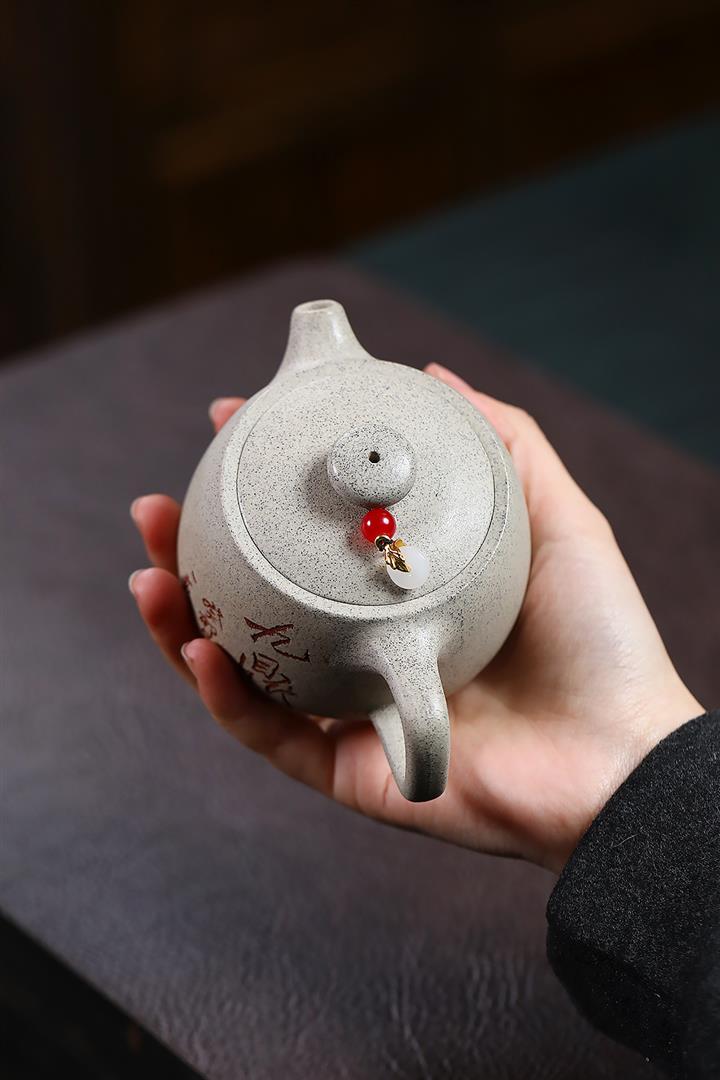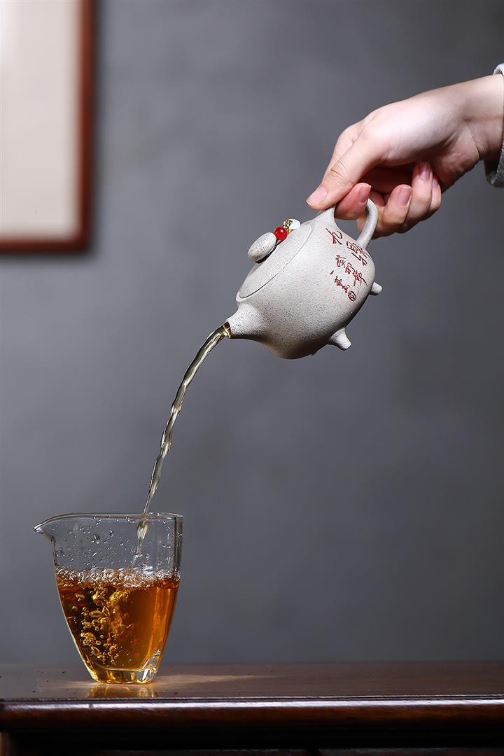 【泥料特點】砂土氣重,似淳實農民,日久使用,漸露鋒芒,養成變化,溫潤莊重。紫砂是壹種雙重氣孔結構的多孔性材質,氣孔微細,密度高。用紫砂壺沏茶,不失原味,且香不渙散,得茶之真香真味。紫砂使用越久,壺身色澤越發光亮照人,氣韻溫雅。紫砂壺長久使用器身會因撫摸擦拭,變得越發溫潤光澤。