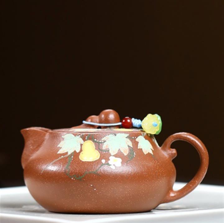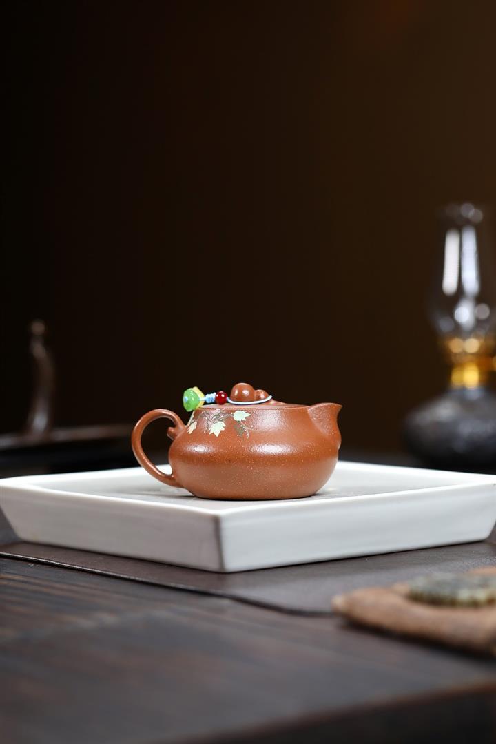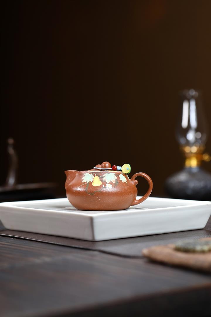 紫砂紅皮龍福祿合扁紫砂壺POT5698