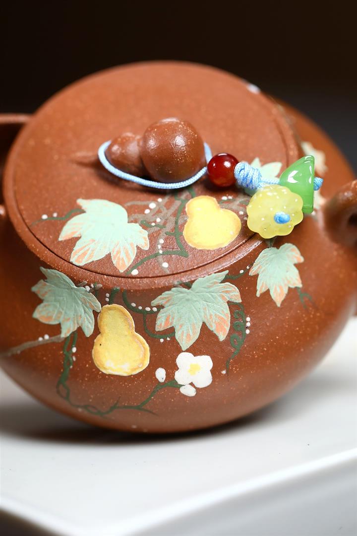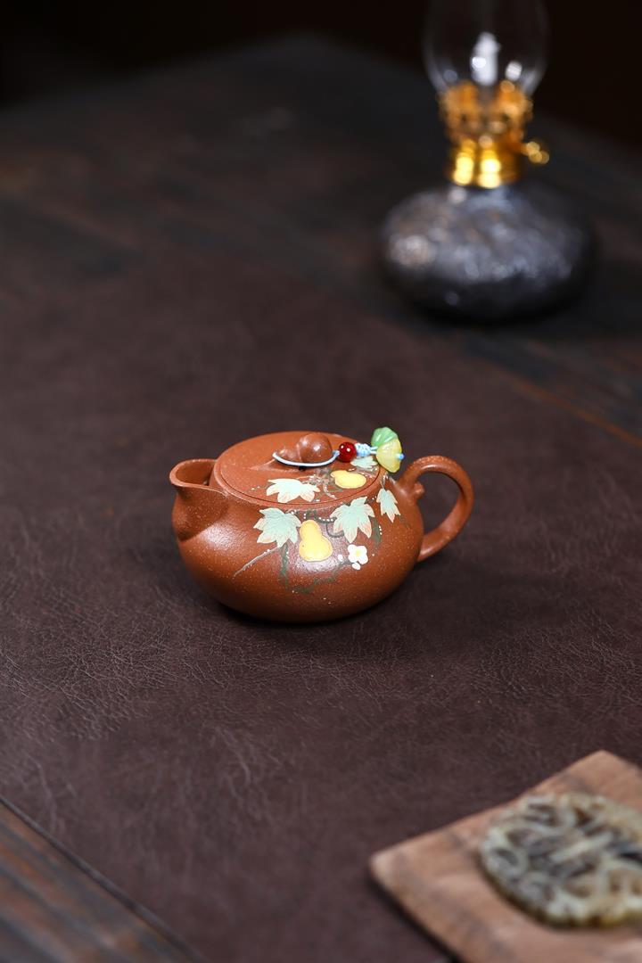 朱泥文旦泥繪熊貓紫砂壺POT5701