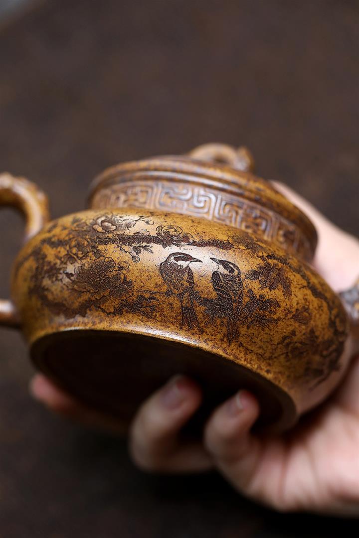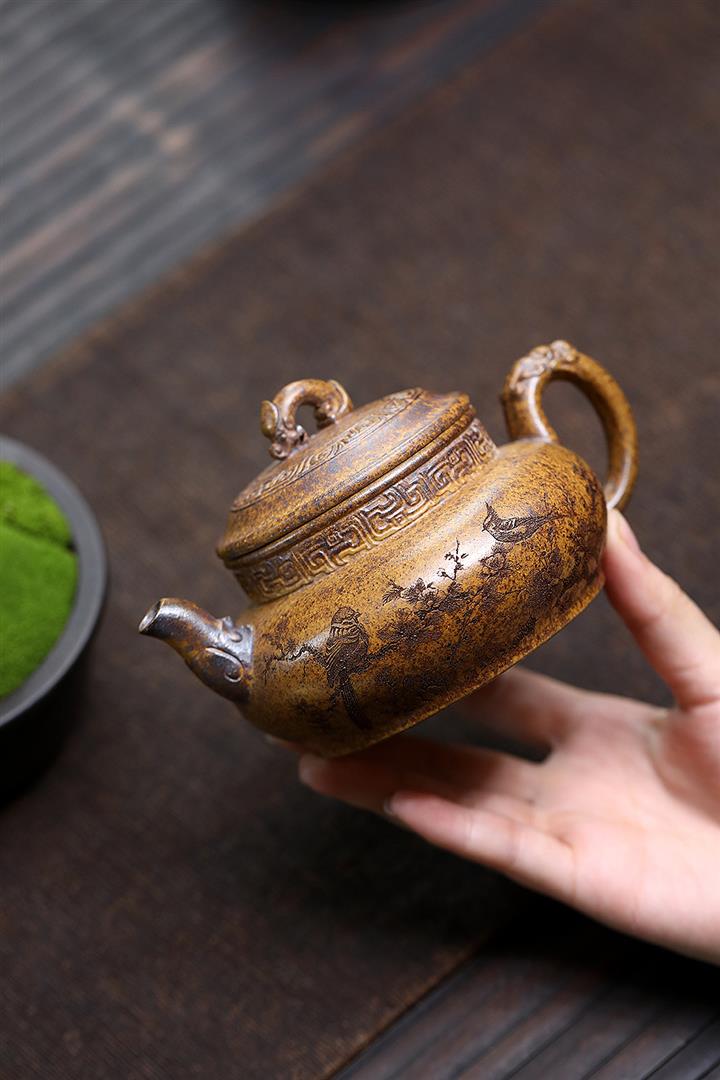 【作品介紹】此款壺形線條流暢,壺把,壺嘴,壺身壹氣呵成栩栩如生,是收藏把玩的好壺,泥料色澤古樸典雅,日久使用,漸露鋒芒,養成變化快,溫潤莊重,用其泡茶,使用的年代久,壺身就溫潤,泡出來的茶湯也就醇郁芳馨。