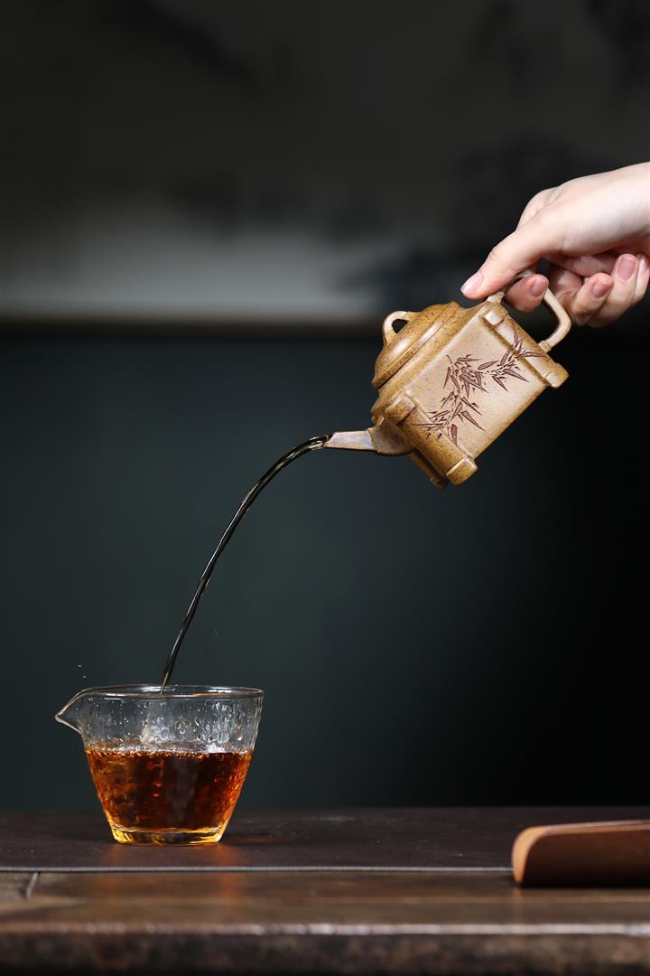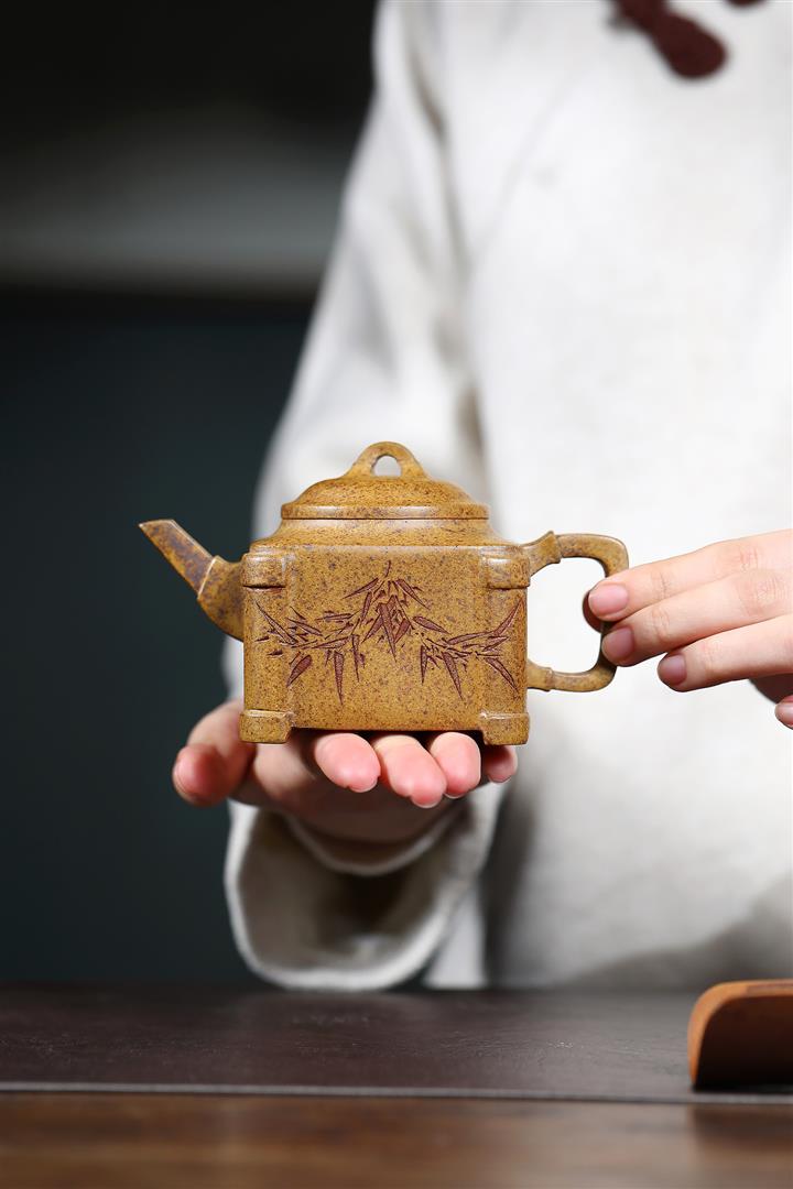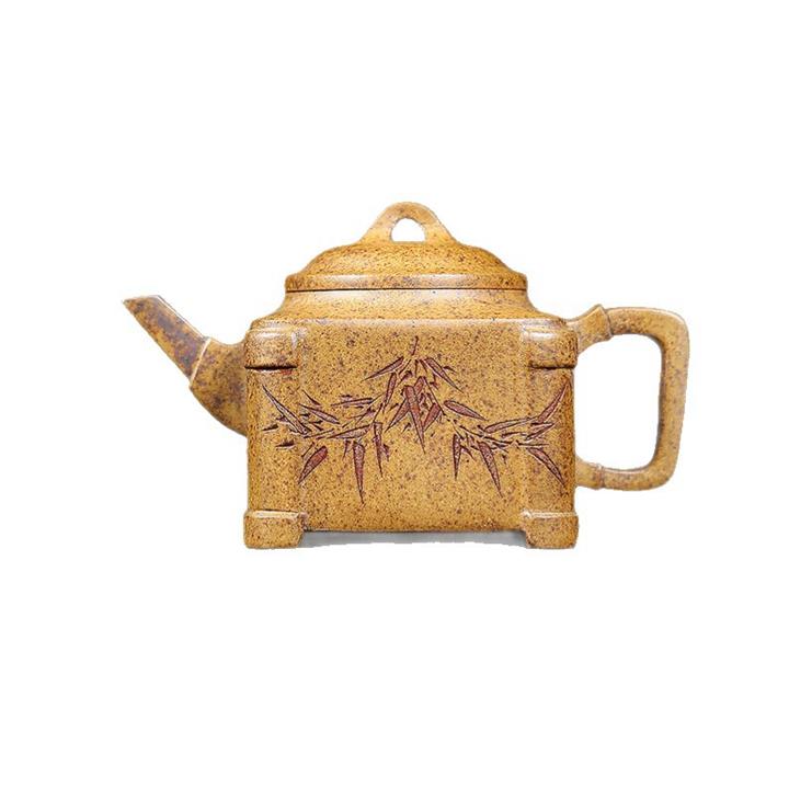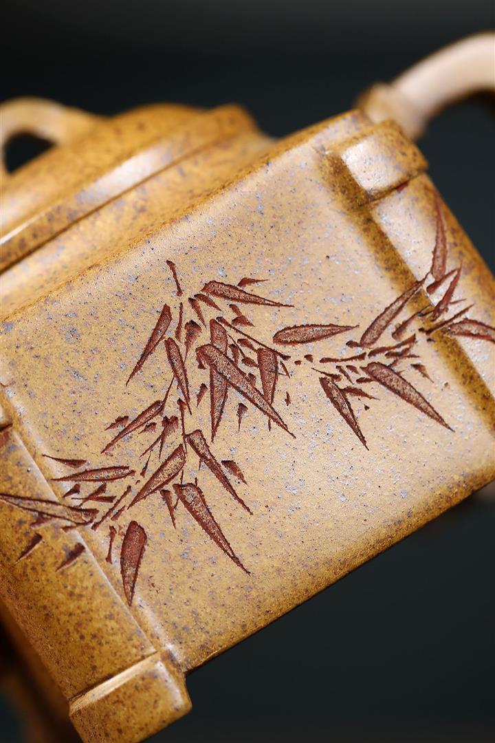 240cc古龍窯柴燒龍骨金砂四方刻竹泡茶壺POT9631