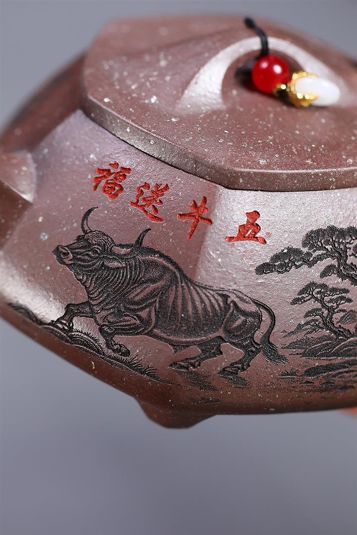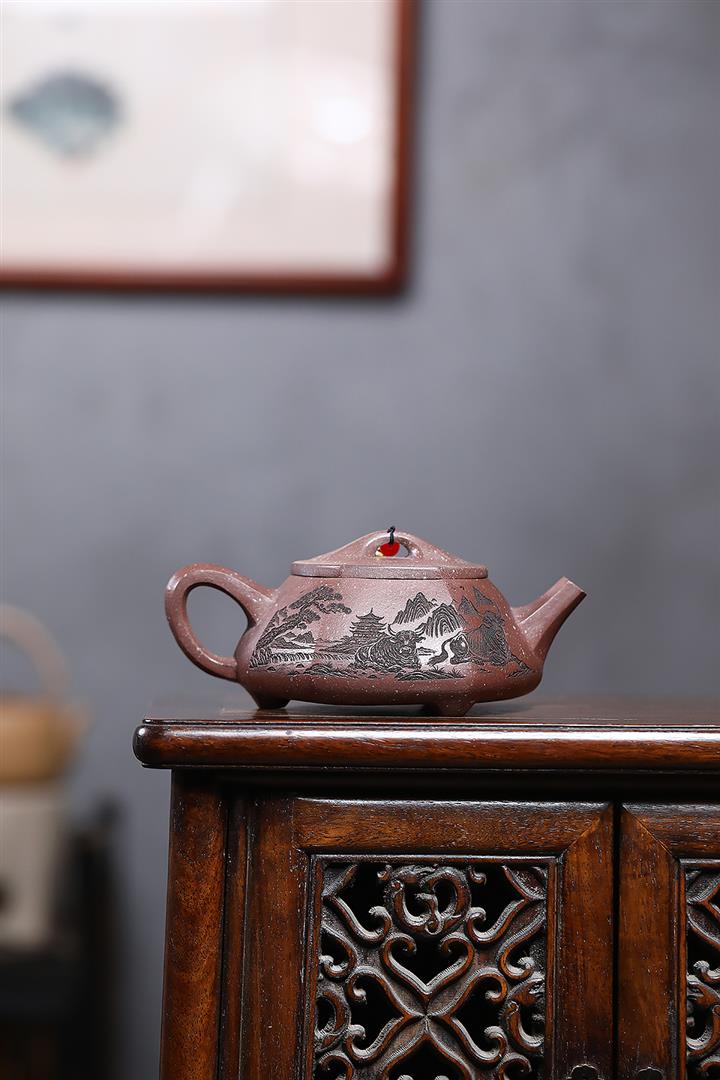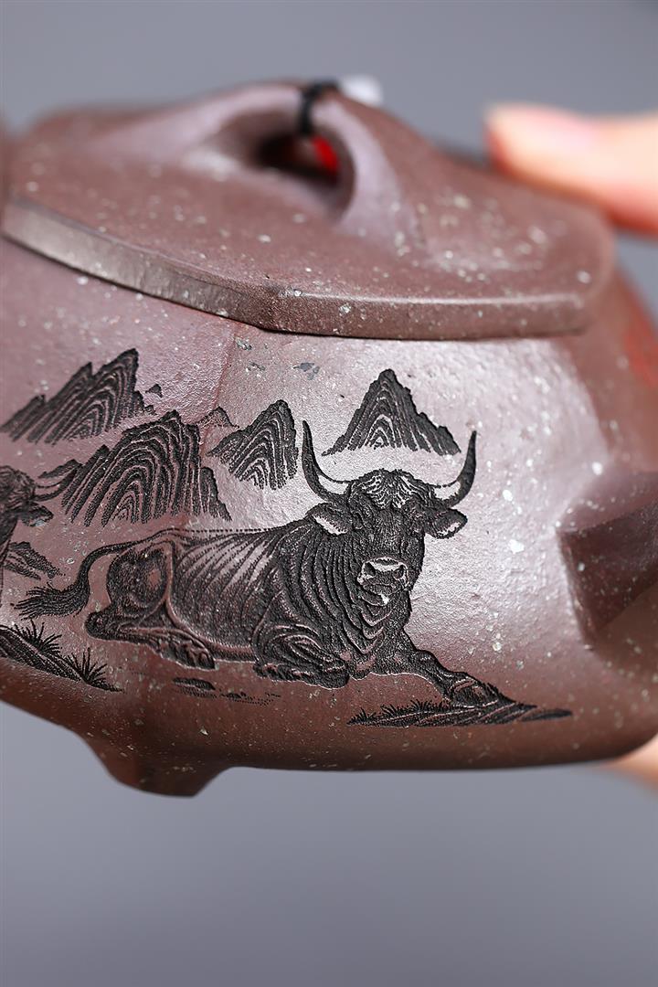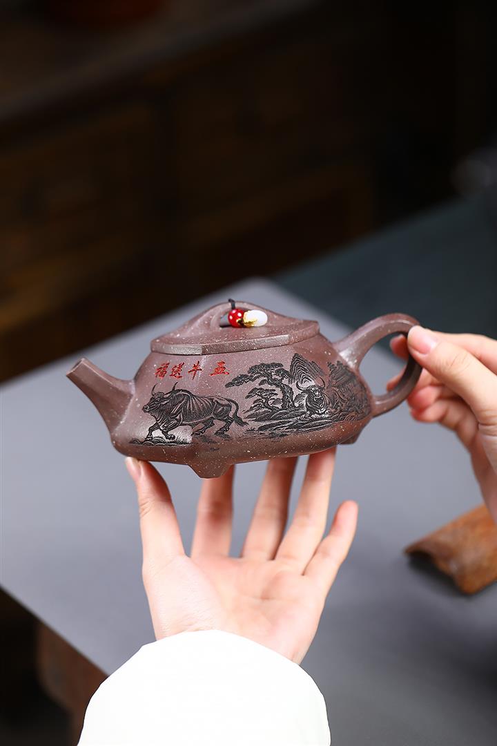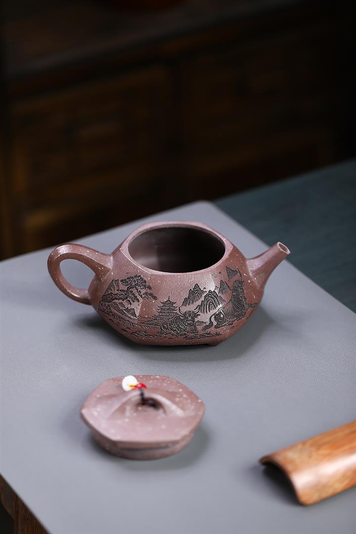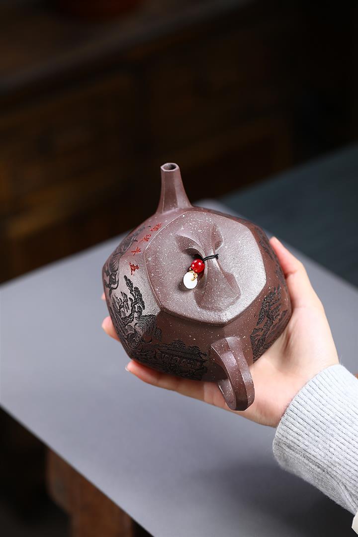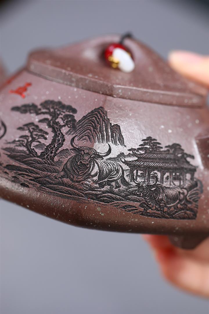 鳳鳴原礦龍血砂茶具手刻紫砂壺工堂禮品茶具壺pot3786