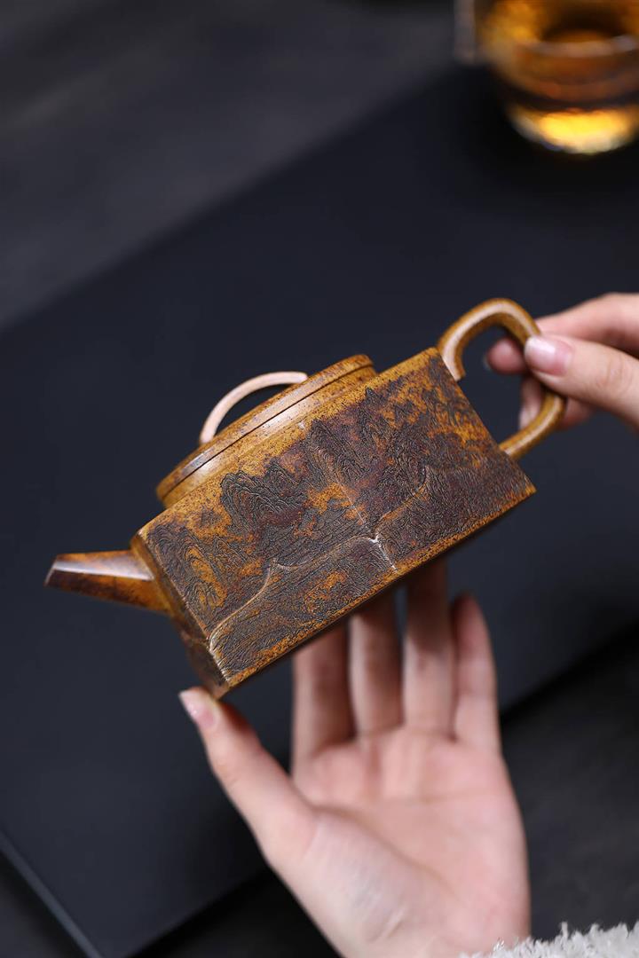 320cc原礦龍骨金砂特高溫燒菱方泡茶壺POT9648