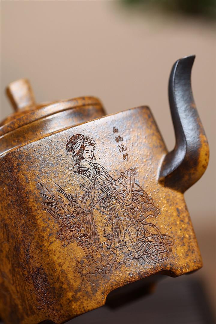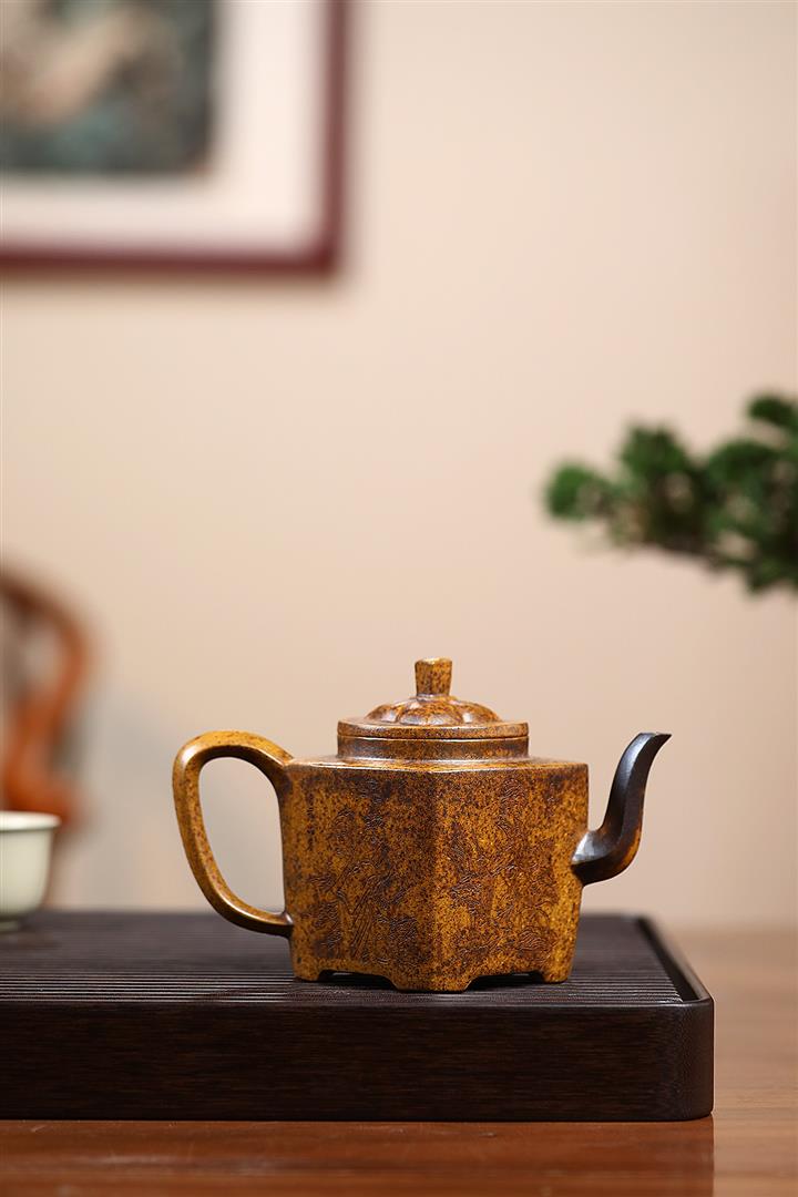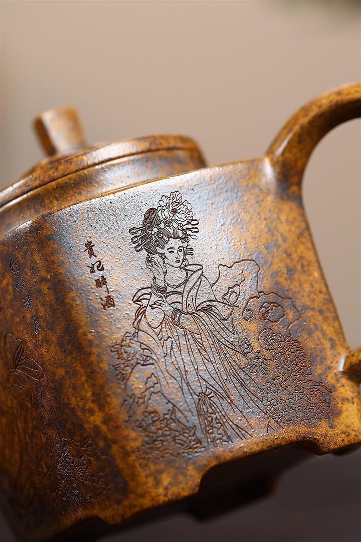原礦大紅袍手工刻字金潘茶壺POT7120