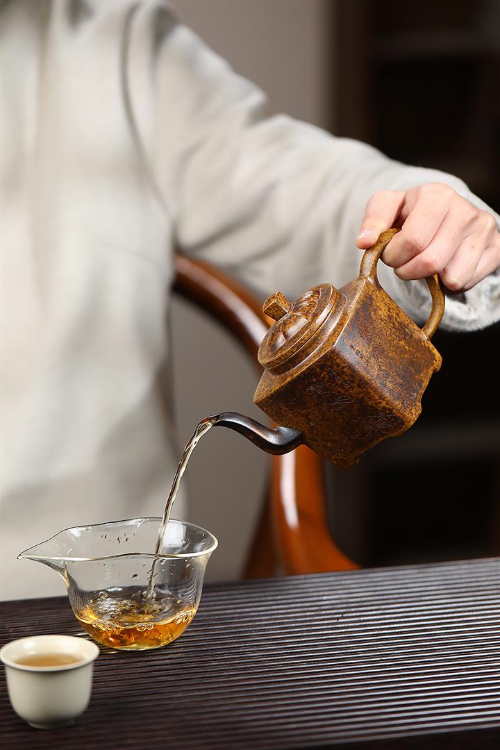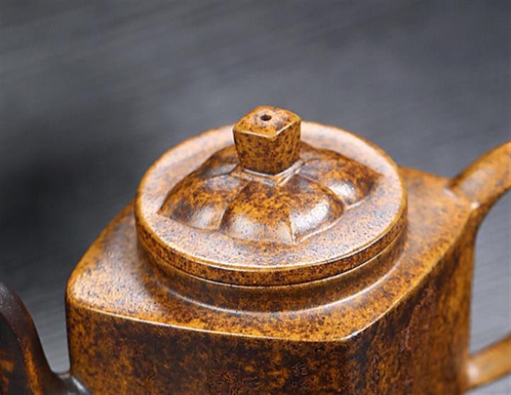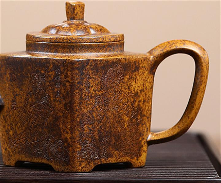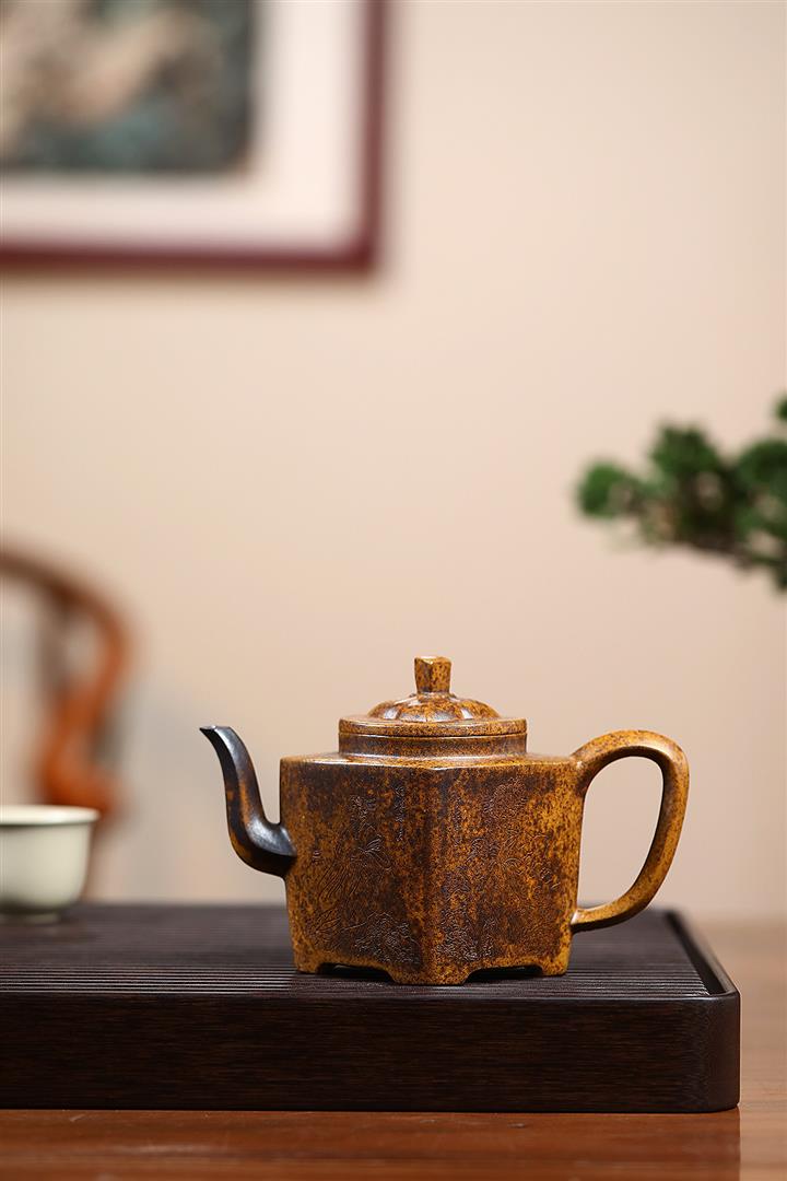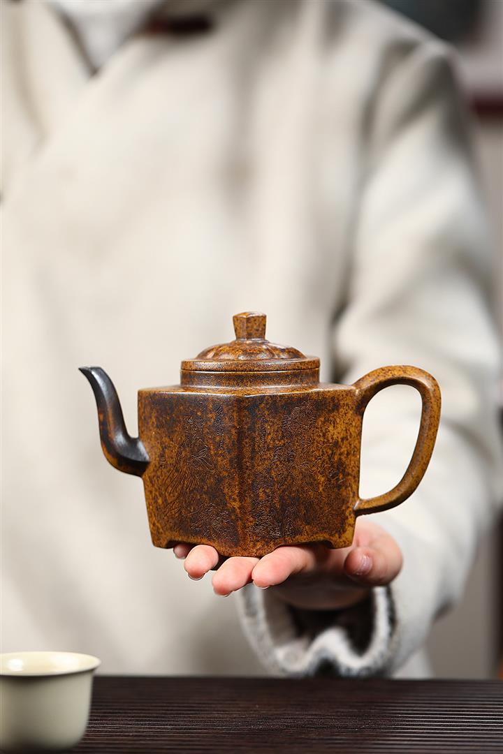 原礦老紫泥刻繪無界六方茶壺POT7115
