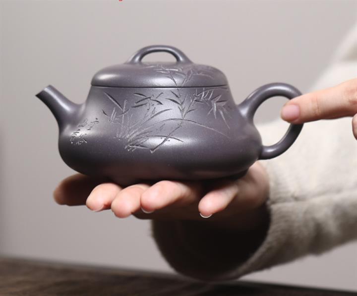 手工製怡然自得青灰段紫砂壺POT4037