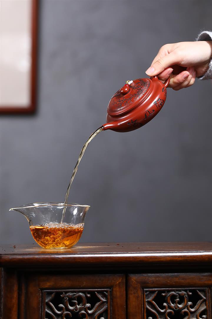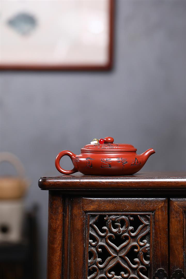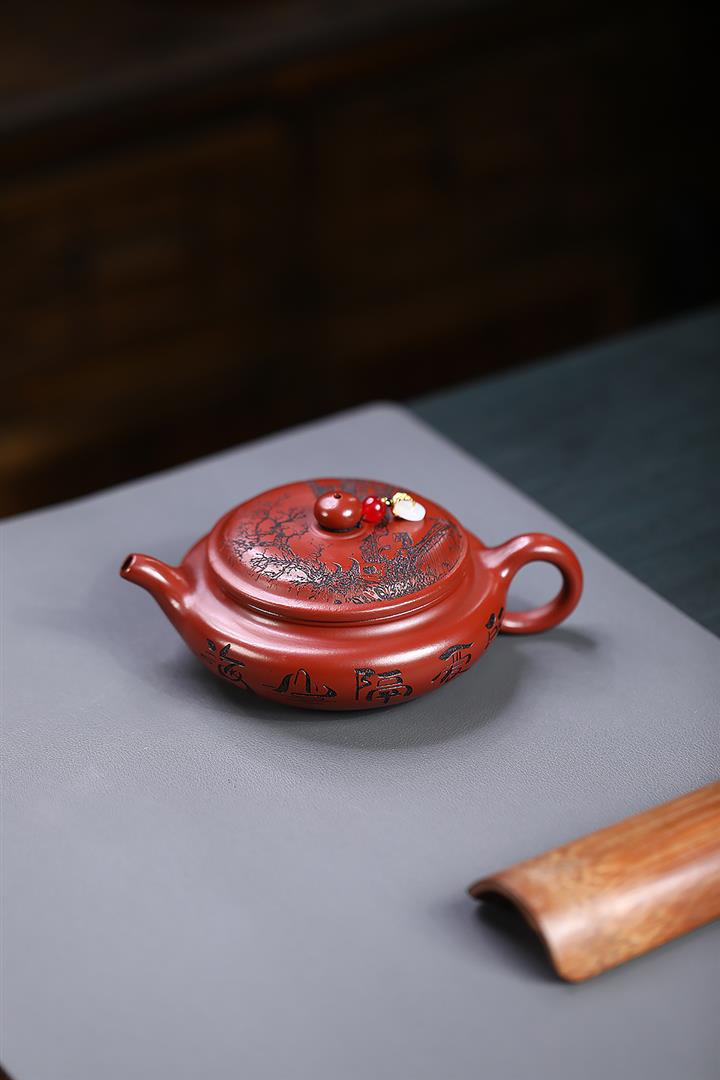 原礦大紅袍泥繪水平紫砂壺POT4996