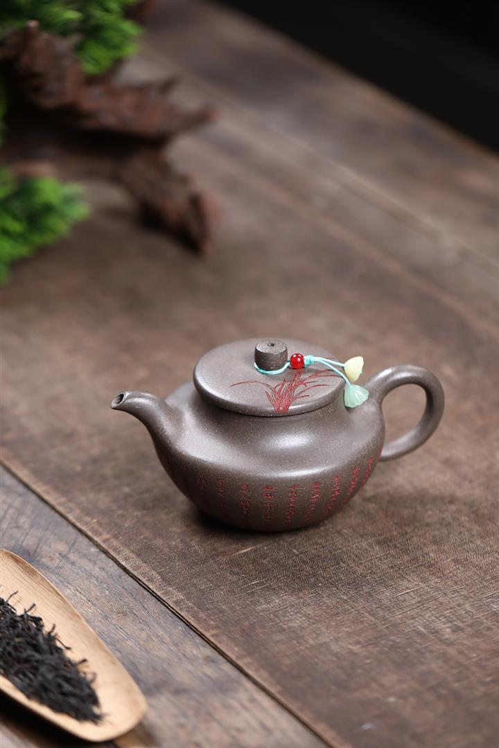 寅·九齡君子蘭竹節漢瓦紫砂壺POT6378
