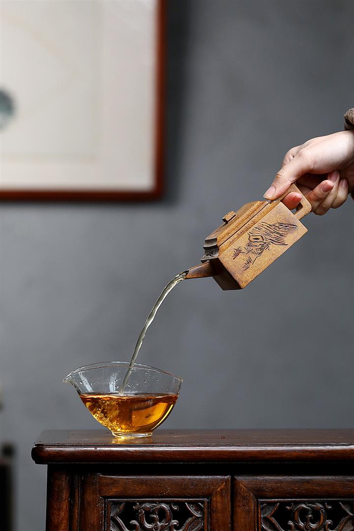 【泥料特點】砂土氣重,似淳實農民,日久使用,漸露鋒芒,養成變化,溫潤莊重。紫砂是壹種雙重氣孔結構的多孔性材質,氣孔微細,密度高。用紫砂壺沏茶,不失原味,且香不渙散,得茶之真香真味。紫砂使用越久,壺身色澤越發光亮照人,氣韻溫雅。紫砂壺長久使用器身會因撫摸擦拭,變得越發溫潤光澤。