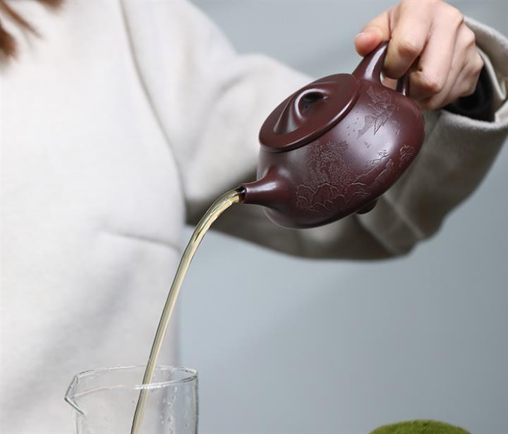 【泥料特點】砂土氣重,似淳實農民,日久使用,漸露鋒芒,養成變化,溫潤莊重。紫砂是壹種雙重氣孔結構的多孔性材質,氣孔微細,密度高。用紫砂壺沏茶,不失原味,且香不渙散,得茶之真香真味。紫砂使用越久,壺身色澤越發光亮照人,氣韻溫雅。紫砂壺長久使用器身會因撫摸擦拭,變得越發溫潤光澤。