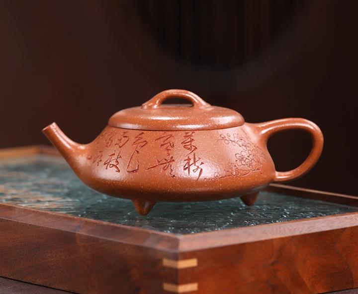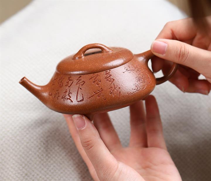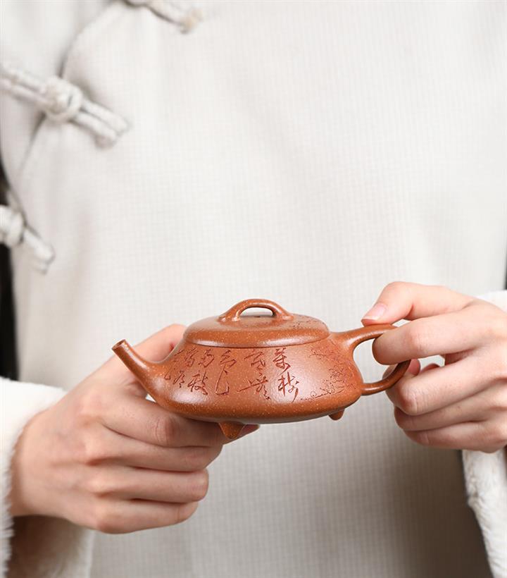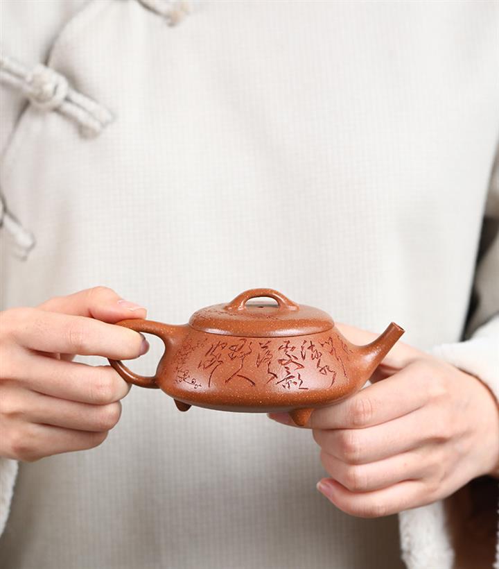【泥料特點】砂土氣重,似淳實農民,日久使用,漸露鋒芒,養成變化,溫潤莊重。紫砂是壹種雙重氣孔結構的多孔性材質,氣孔微細,密度高。用紫砂壺沏茶,不失原味,且香不渙散,得茶之真香真味。紫砂使用越久,壺身色澤越發光亮照人,氣韻溫雅。紫砂壺長久使用器身會因撫摸擦拭,變得越發溫潤光澤。