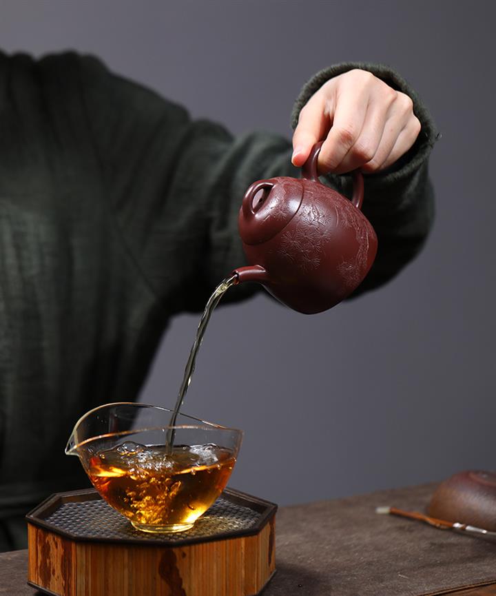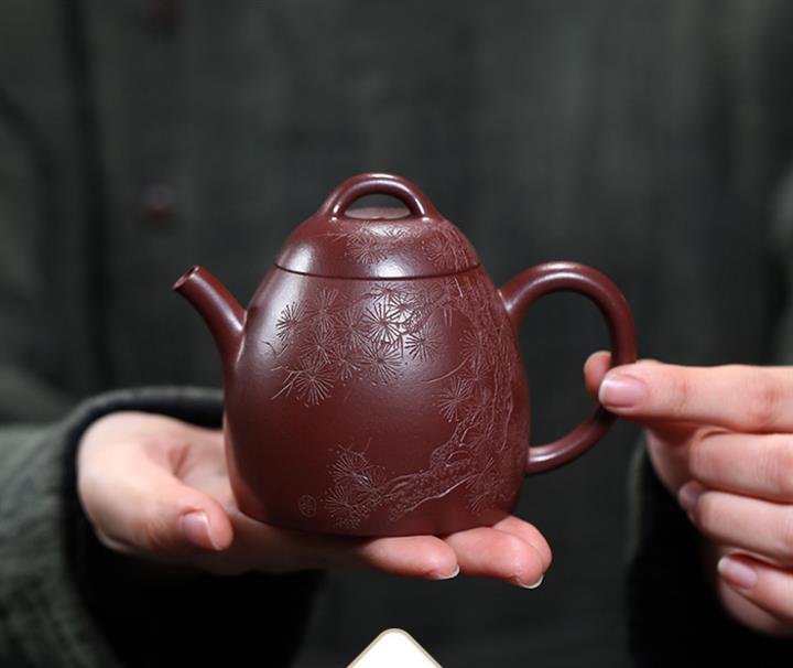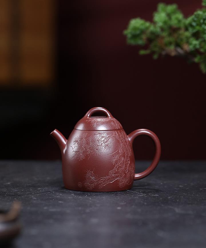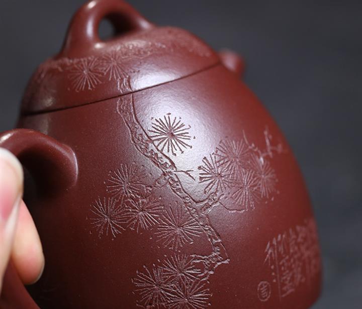 大紅袍還原燒漢瓦紫砂壺POT5740