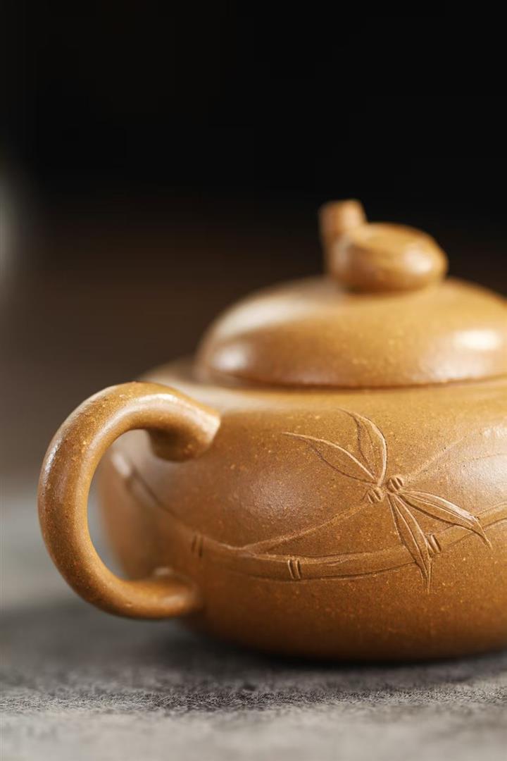【作品介紹】此款壺形線條流暢,壺把,壺嘴,壺身壹氣呵成栩栩如生,是收藏把玩的好壺,泥料色澤古樸典雅,日久使用,漸露鋒芒,養成變化快,溫潤莊重,用其泡茶,使用的年代久,壺身就溫潤,泡出來的茶湯也就醇郁芳馨。