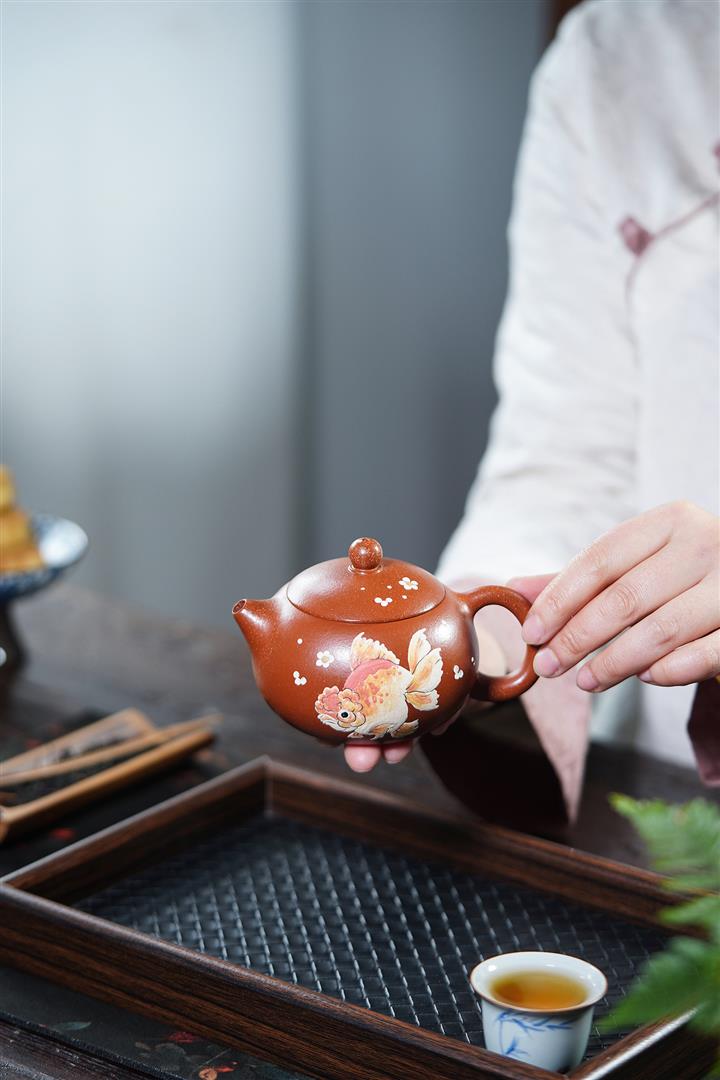 【泥料特點】砂土氣重,似淳實農民,日久使用,漸露鋒芒,養成變化,溫潤莊重。紫砂是壹種雙重氣孔結構的多孔性材質,氣孔微細,密度高。用紫砂壺沏茶,不失原味,且香不渙散,得茶之真香真味。紫砂使用越久,壺身色澤越發光亮照人,氣韻溫雅。紫砂壺長久使用器身會因撫摸擦拭,變得越發溫潤光澤。