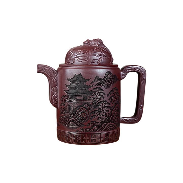 400cc原礦紫泥暮雨山庭龍璽汲直泡茶壺POT9821