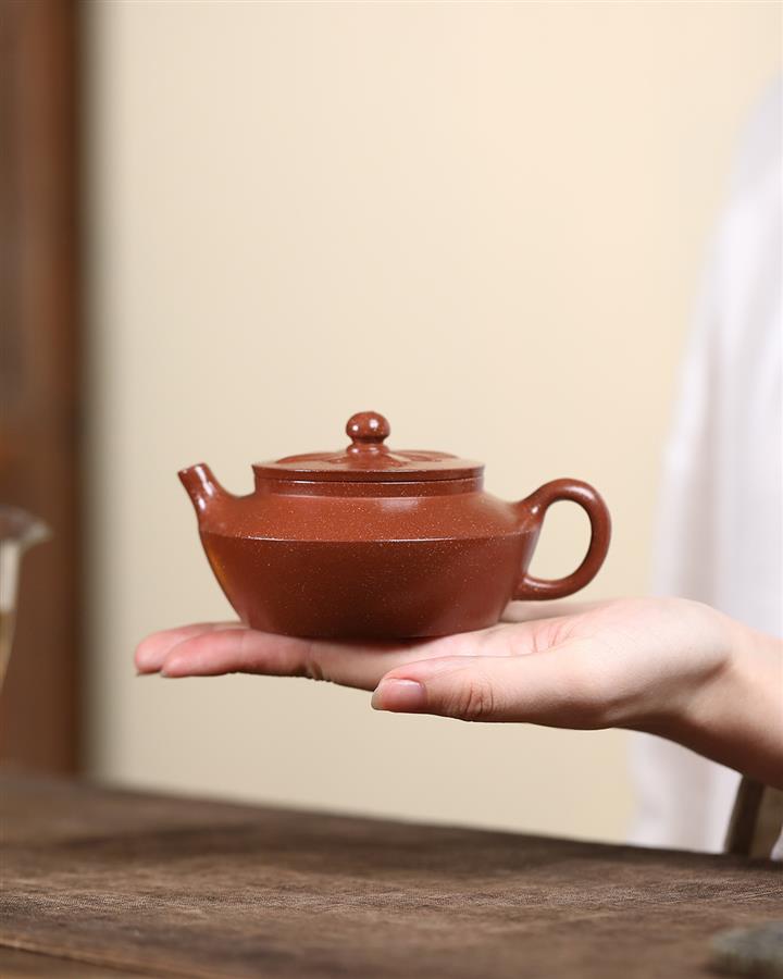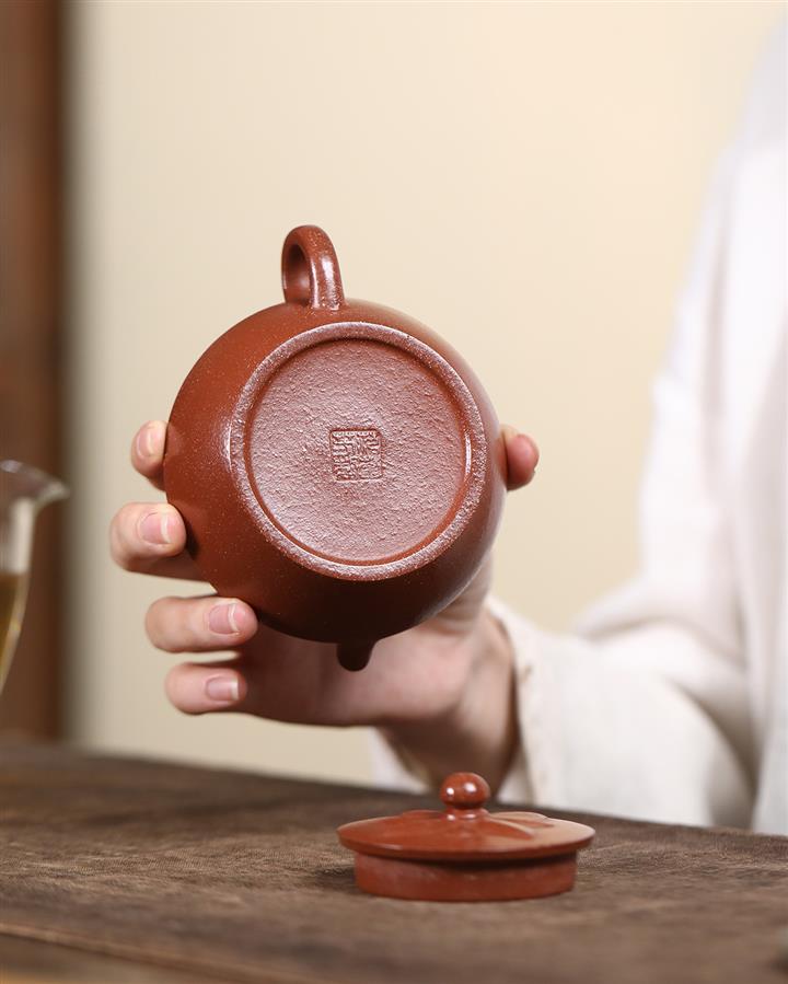 【泥料特點】砂土氣重,似淳實農民,日久使用,漸露鋒芒,養成變化,溫潤莊重。紫砂是壹種雙重氣孔結構的多孔性材質,氣孔微細,密度高。用紫砂壺沏茶,不失原味,且香不渙散,得茶之真香真味。紫砂使用越久,壺身色澤越發光亮照人,氣韻溫雅。紫砂壺長久使用器身會因撫摸擦拭,變得越發溫潤光澤。