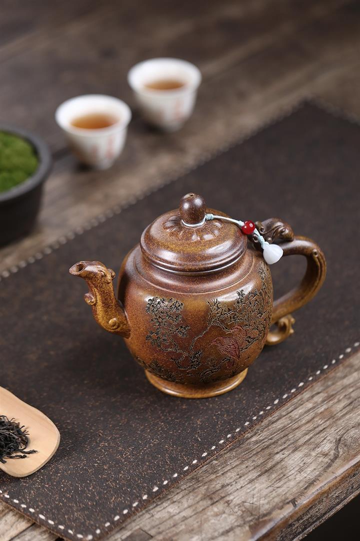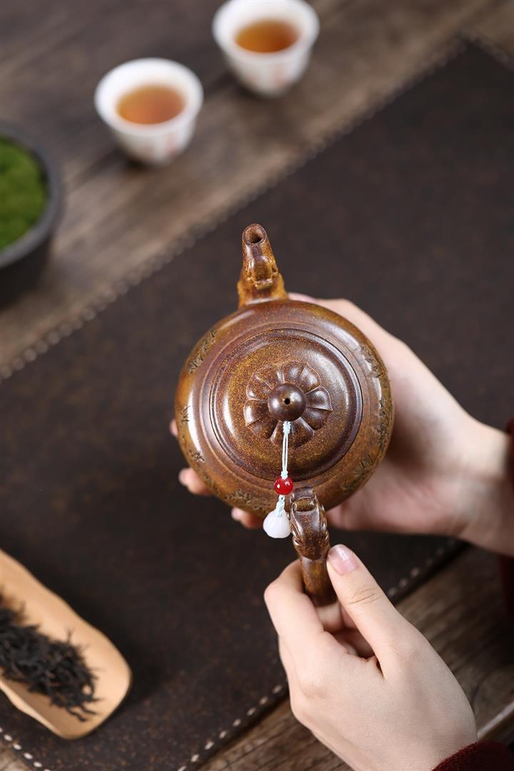 【泥料特點】砂土氣重,似淳實農民,日久使用,漸露鋒芒,養成變化,溫潤莊重。紫砂是壹種雙重氣孔結構的多孔性材質,氣孔微細,密度高。用紫砂壺沏茶,不失原味,且香不渙散,得茶之真香真味。紫砂使用越久,壺身色澤越發光亮照人,氣韻溫雅。紫砂壺長久使用器身會因撫摸擦拭,變得越發溫潤光澤。