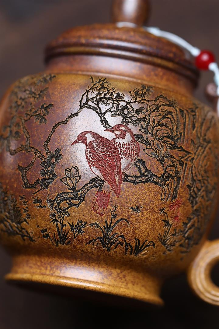 【作品介紹】此款壺形線條流暢,壺把,壺嘴,壺身壹氣呵成栩栩如生,是收藏把玩的好壺,泥料色澤古樸典雅,日久使用,漸露鋒芒,養成變化快,溫潤莊重,用其泡茶,使用的年代久,壺身就溫潤,泡出來的茶湯也就醇郁芳馨。