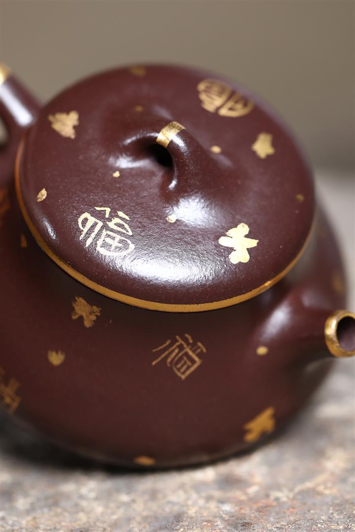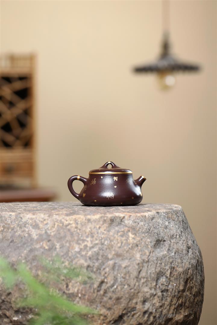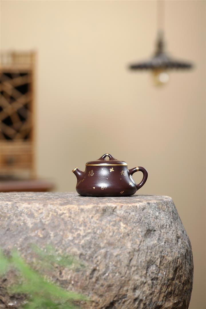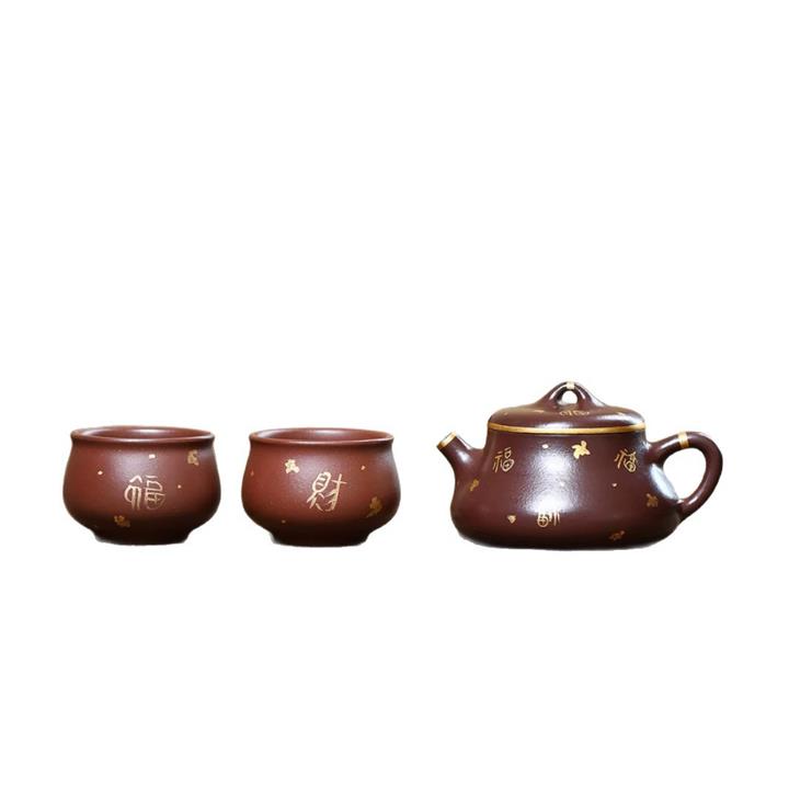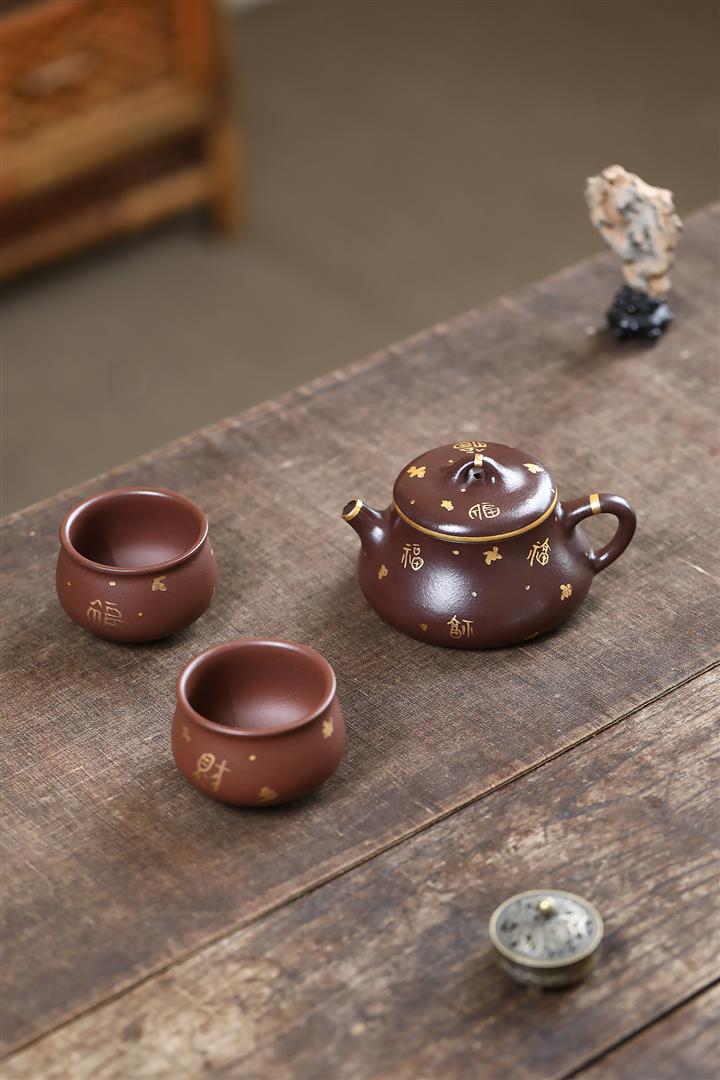 150cc原礦紫泥描金小蘊瓢壹壺兩杯套組泡茶壺POT9844