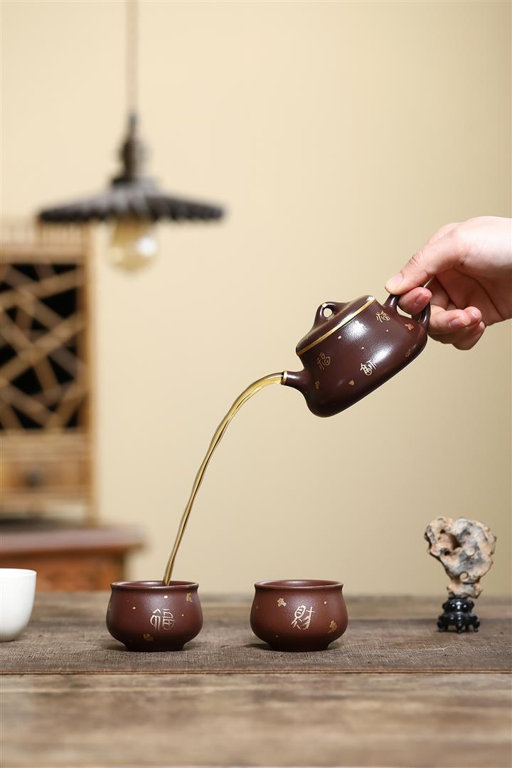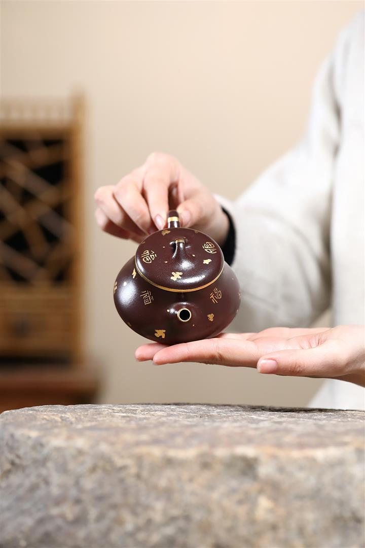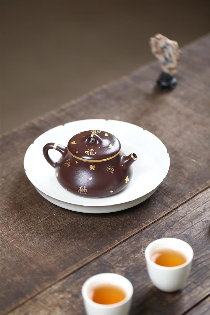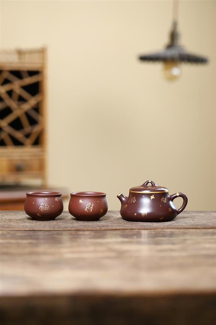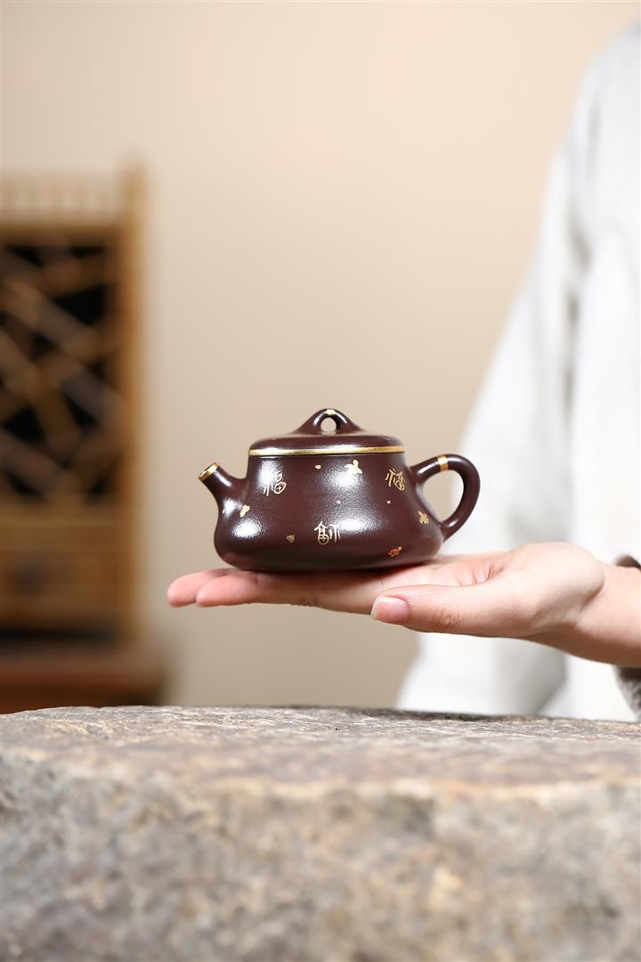 150cc原礦紫泥描金小蘊瓢壹壺兩杯套組泡茶壺POT9844