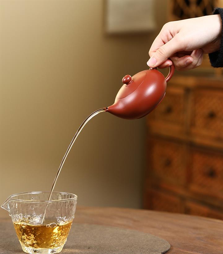 【泥料特點】砂土氣重,似淳實農民,日久使用,漸露鋒芒,養成變化,溫潤莊重。紫砂是壹種雙重氣孔結構的多孔性材質,氣孔微細,密度高。用紫砂壺沏茶,不失原味,且香不渙散,得茶之真香真味。紫砂使用越久,壺身色澤越發光亮照人,氣韻溫雅。紫砂壺長久使用器身會因撫摸擦拭,變得越發溫潤光澤。