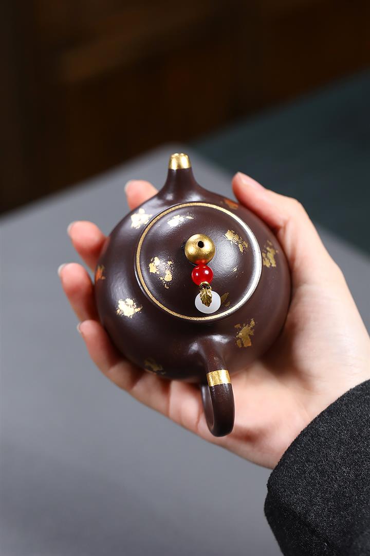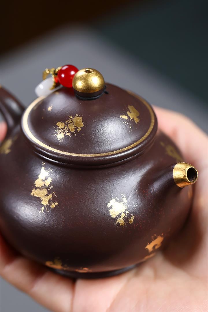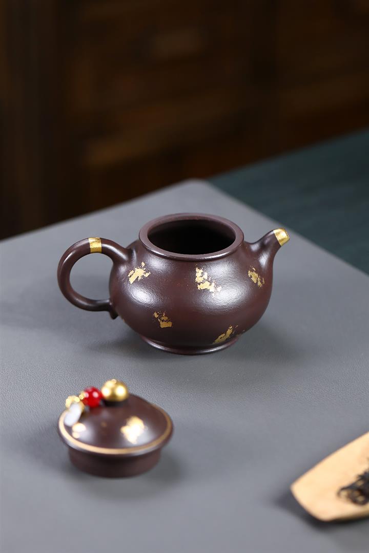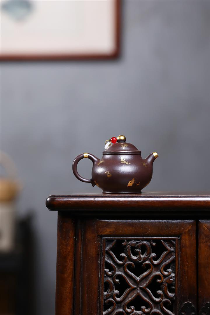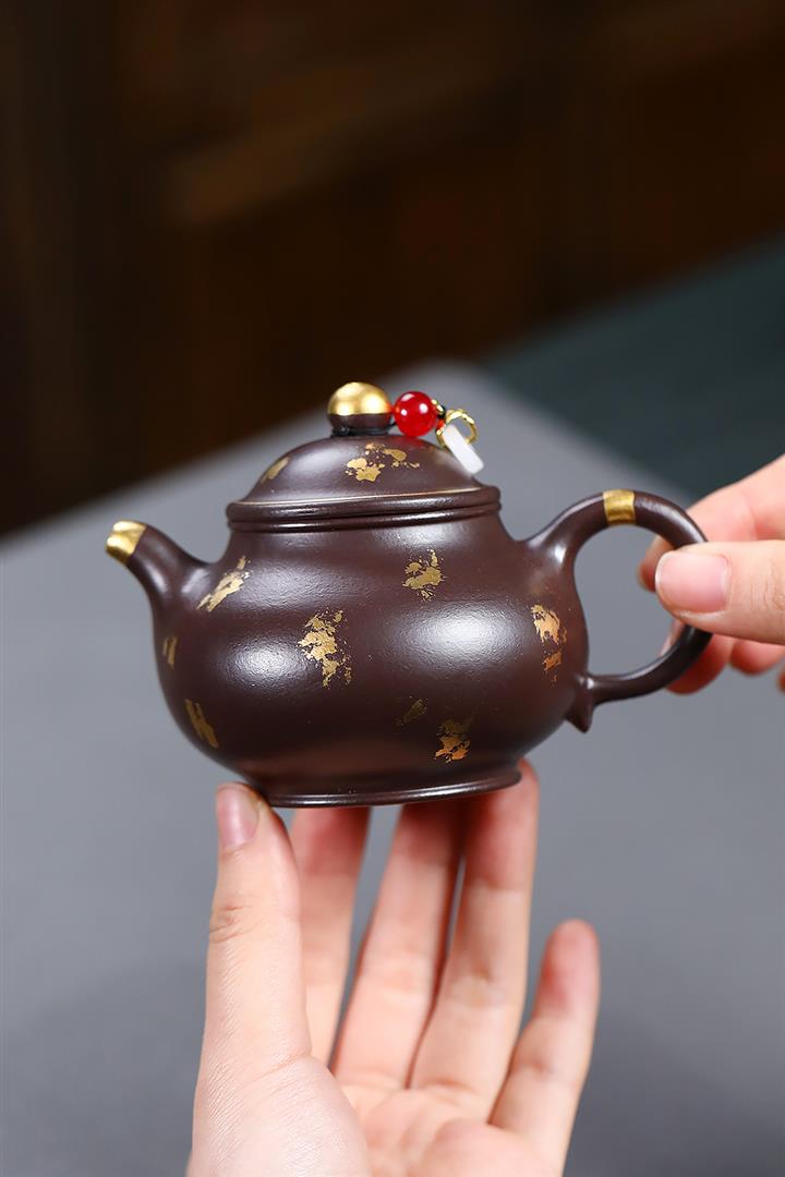 300cc原礦老紫泥灑金小潘壺泡茶壺POT9874
