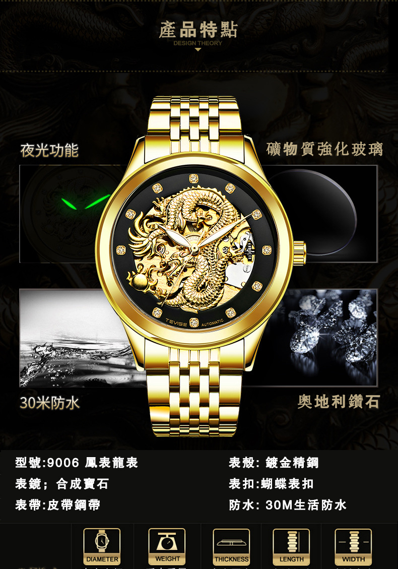 經典中國風龍鳳情侶對錶 wat218