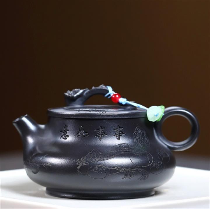 400cc原礦高溫段泥刻繪靈芝泡茶壺POT9597