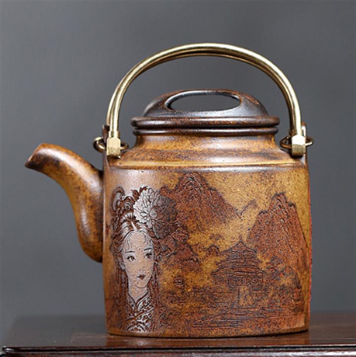 470cc原礦高溫段泥牛蓋洋桶提梁泡茶壺POT9596