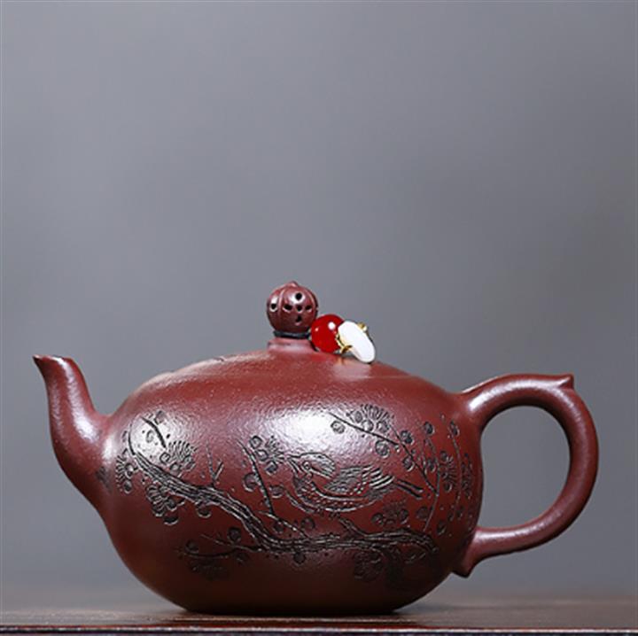 280cc原礦石紅泥龍鳳呈祥漢瓦茶壺POT9594