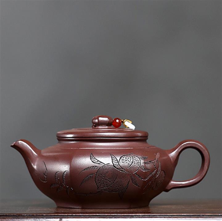 290cc原礦紫泥六方壽桃福源茶壺茶壺POT9038